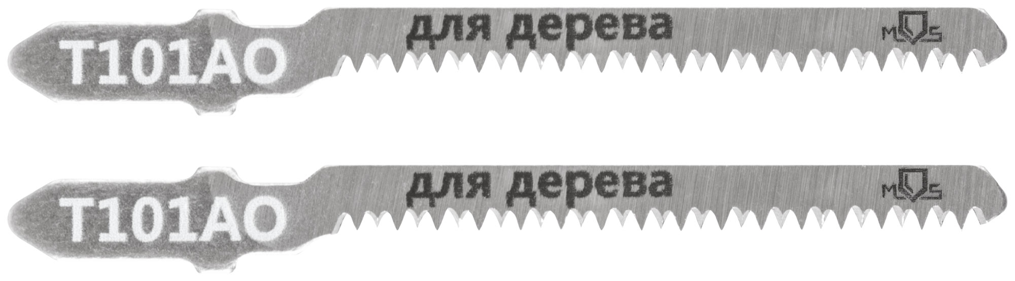 Т101AO. Набор 2 шт. Зубья: шлифованные. Криволинейный чистый рез. Для резки мягкой древесины, столярных плит, ДВП, ДСП, фанеры. Т-образный хвостовик. Материал: сталь 65MN. Упаковка: пакет с подвесом.