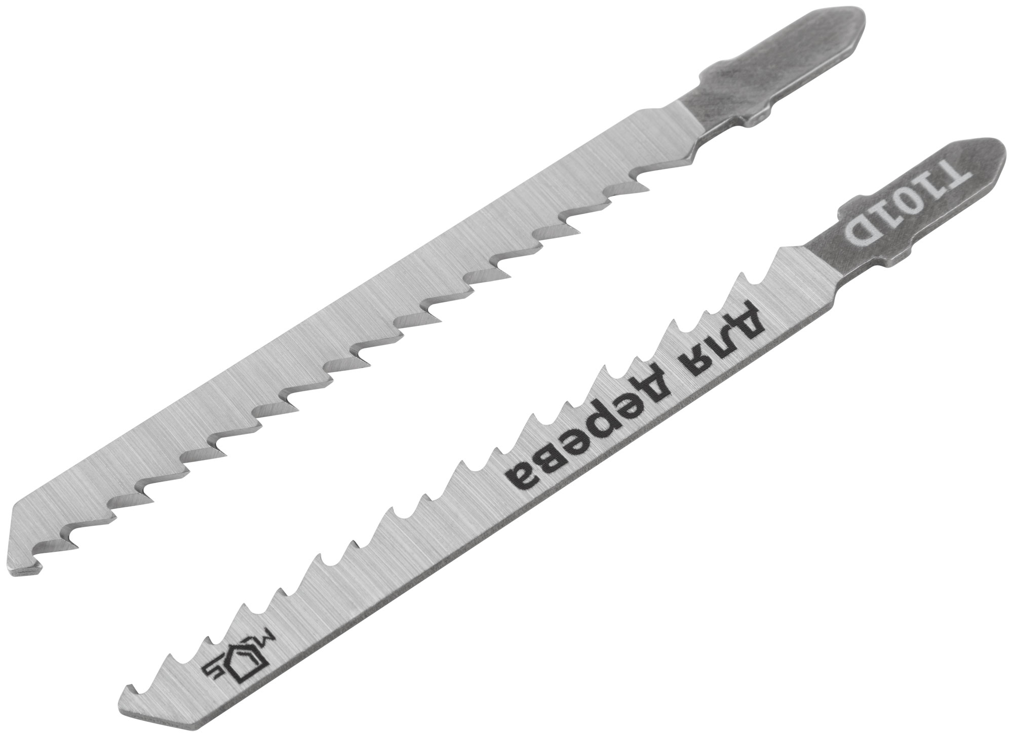 T101D. Набор 2 шт. Зубья: шлифованные. Прямой быстрый рез. Для резки мягкой древесины, столярных плит, ДВП, ДСП. Т-образный хвостовик.Материал: сталь 65MN. Упаковка: пакет с подвесом.