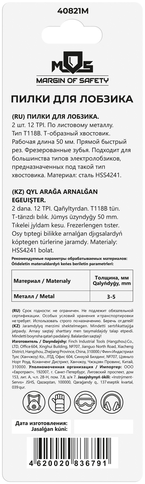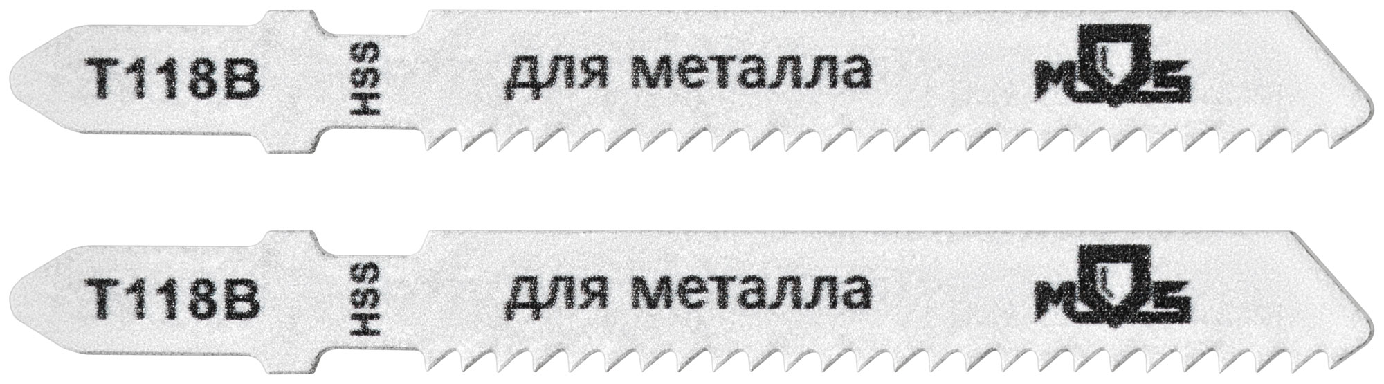 T118B. Набор 2 шт. Зубья: фрезерованные. Прямой быстрый рез. Для резки листового металла. Т-образный хвостовик. Материал: быстрорежущаясталь HSS4241. Упаковка: пакет с подвесом.