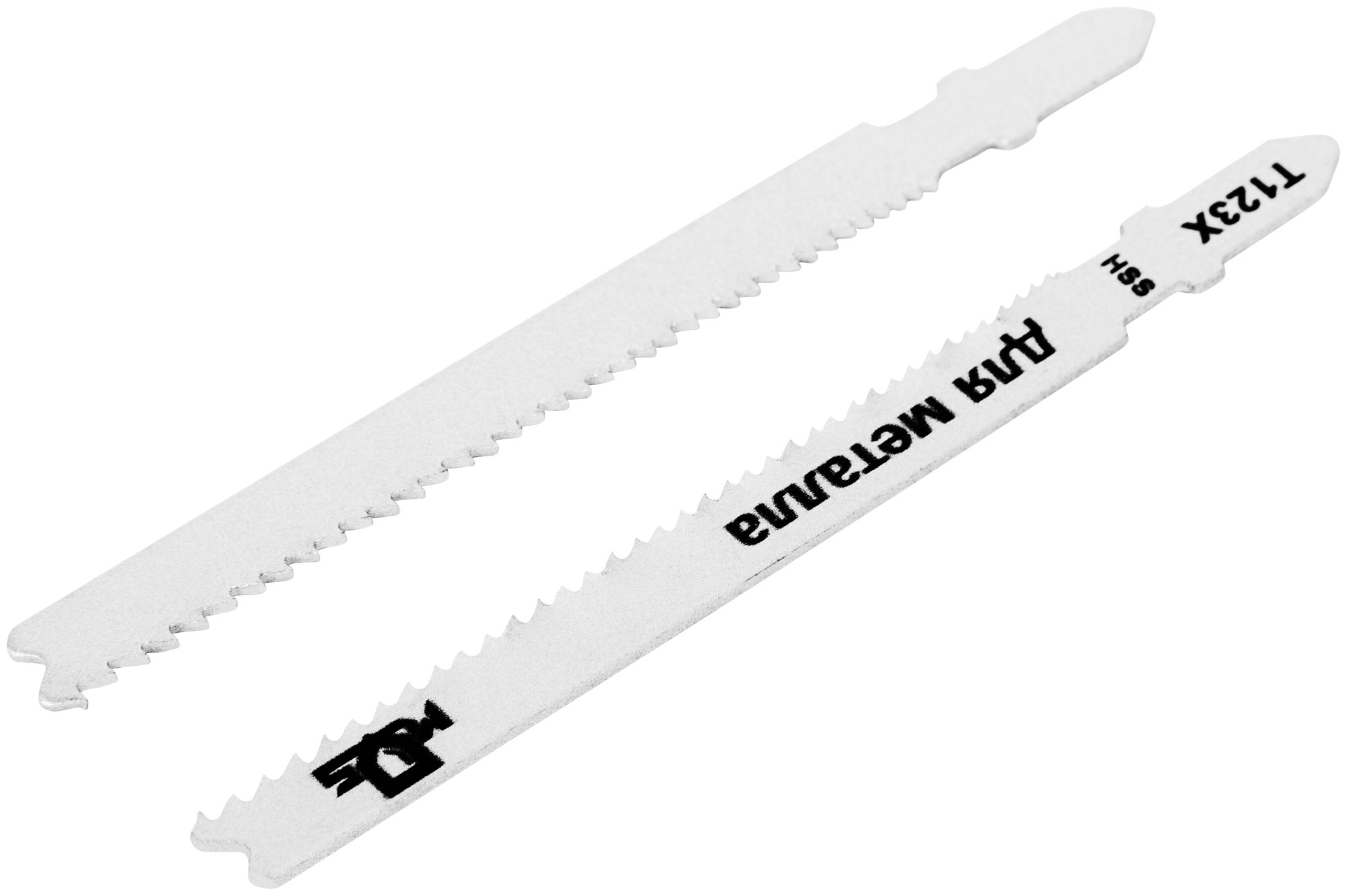 T123X. Набор 2 шт. Зубья: фрезерованные. Прямой рез. Для резки листового металла, цветных металлов, металопрофилей, труб. Т-образный хвостовик.Материал: быстрорежущая сталь HSS4241. Упаковка: пакет с подвесом.