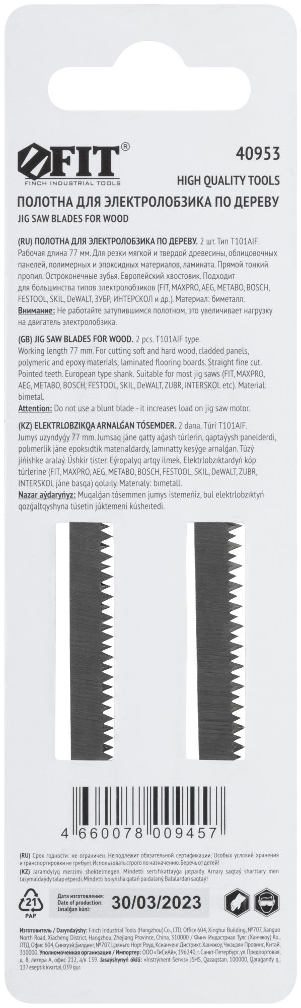 Полотна по дереву, Bimetal, остроконечные зубья, 100/77/1,7 мм (T101AIF), 2 шт.