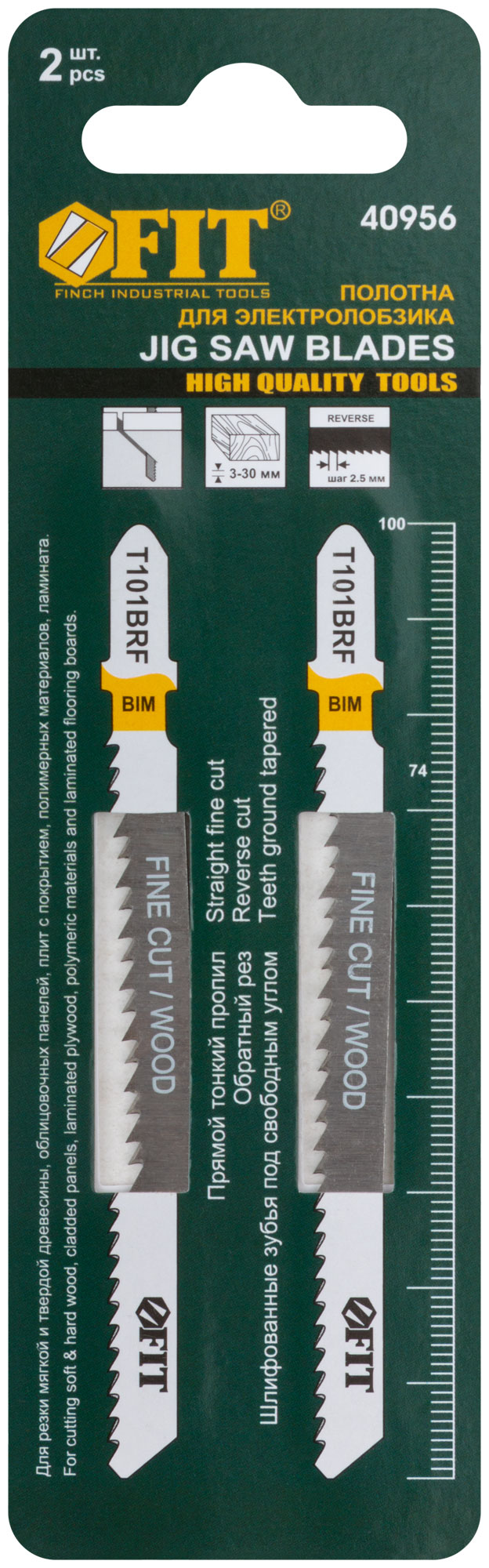 Полотна по дереву, Bimetal, шлифованные под свободным углом, реверс. зубья, 100/74/2,5 мм (T101BRF), 2 шт.