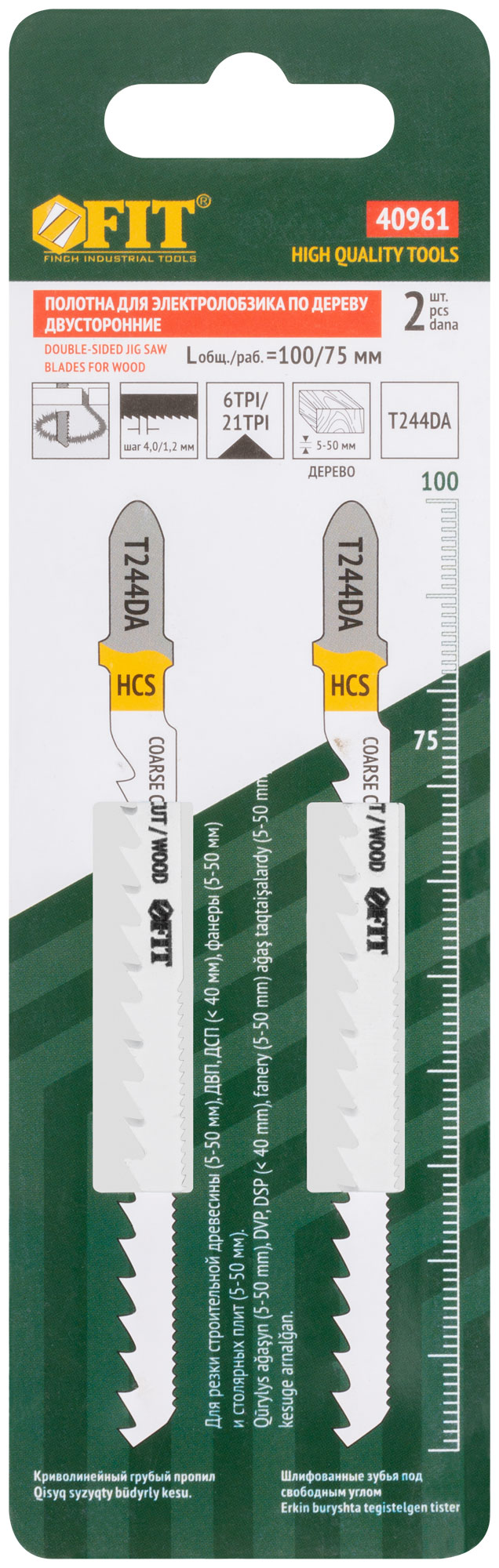 Полотна по дереву двусторонние, HCS, шлифованные под свободным углом зубья, 100/75 мм (T244DA), 2 шт.