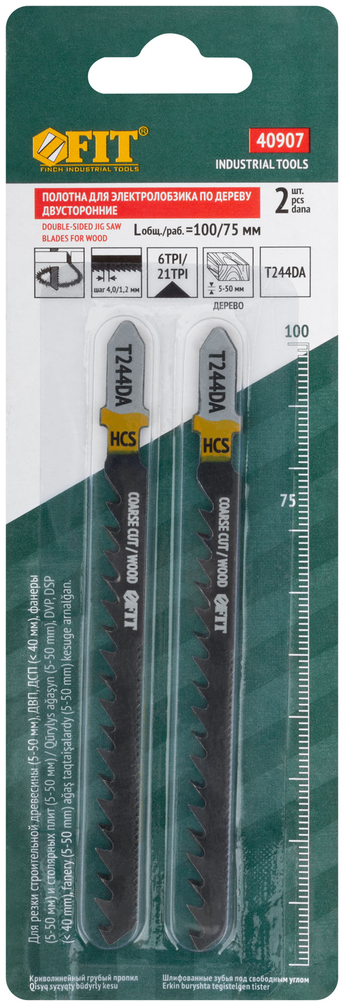 Полотна по дереву двусторонние, HCS, шлифованные под свободным углом зубья, 100/75 мм (T244DA), 2 шт.