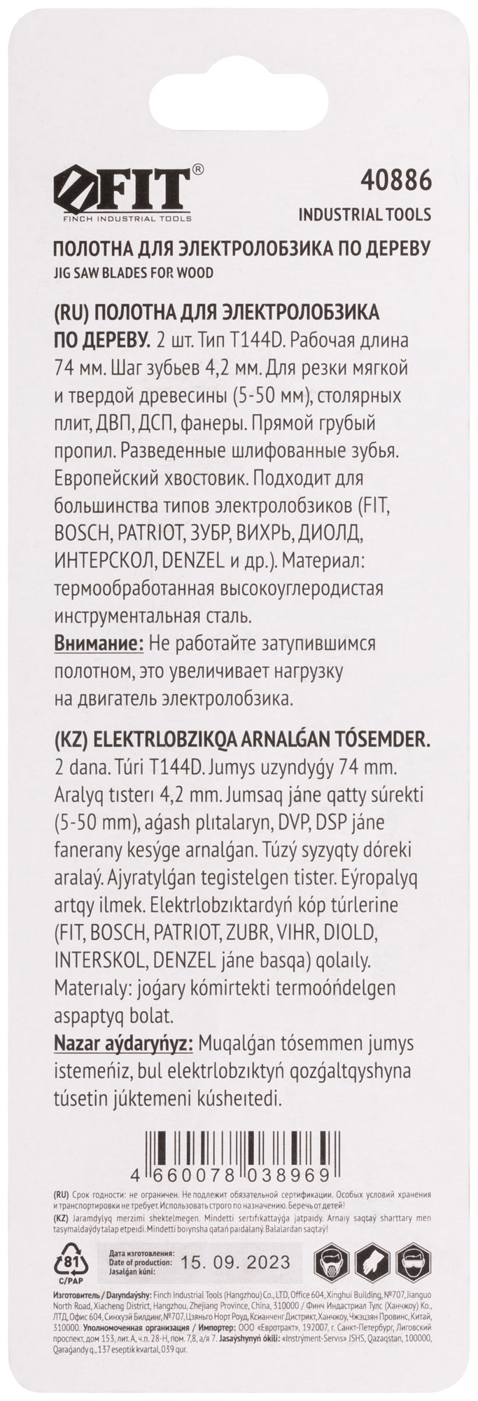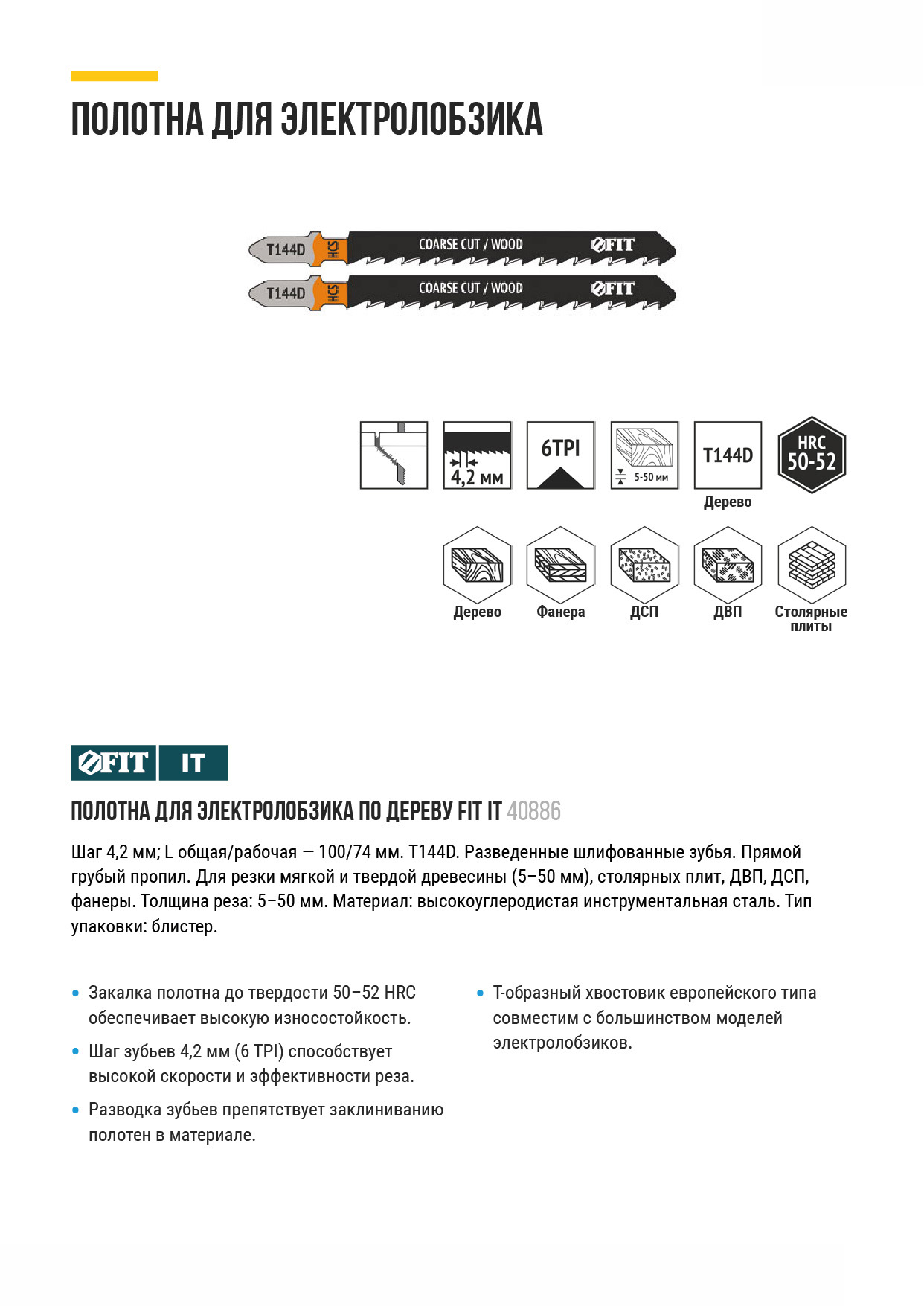 T144D. Разведенные шлифованные зубья. Прямой грубый пропил. Для резки мягкой и твердой древесины, столярных плит, ДВП, ДСП, фанеры. Толщина реза: 5-50 мм. Материал: высокоуглеродистая инструментальная сталь. Упаковка: блистер.