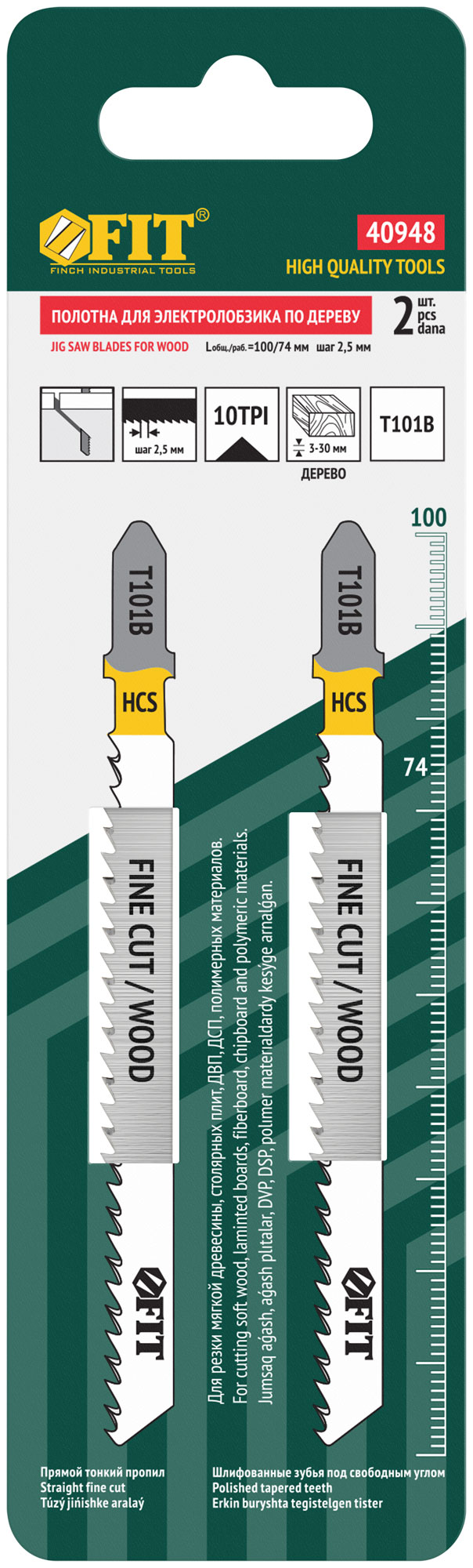 Полотна по дереву, HCS, шлифованные под свободным углом зубья, 100/74/2,5 мм (T101B), 2 шт.