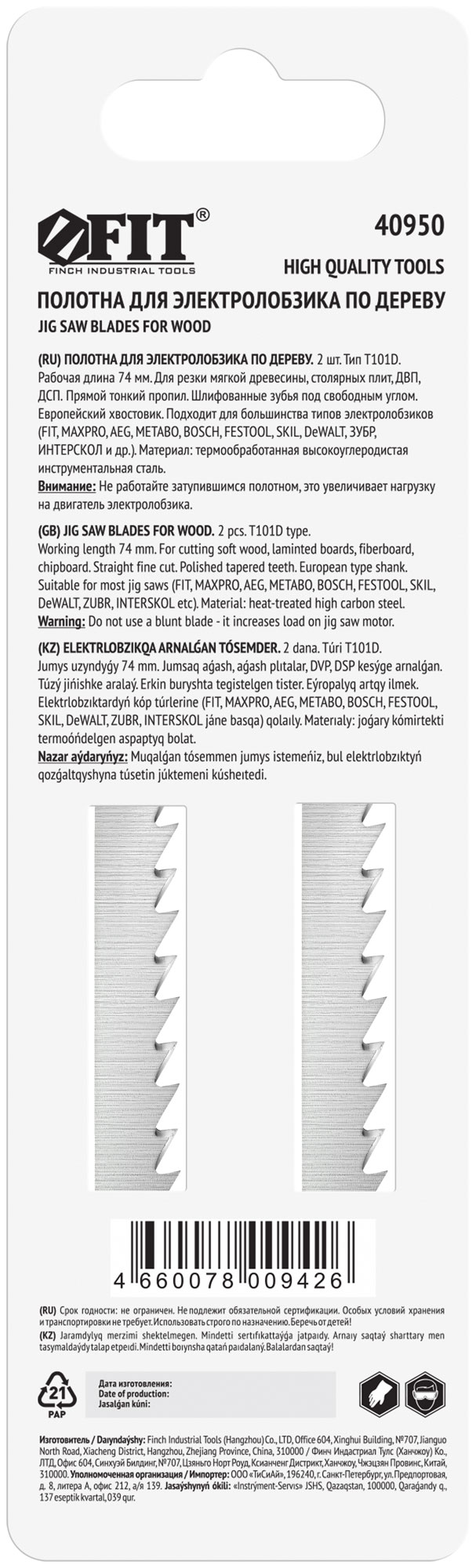 Полотна по дереву, HCS, шлифованные под свободным углом зубья, 100/74/4 мм (T101D), 2 шт.