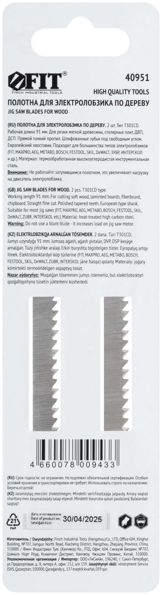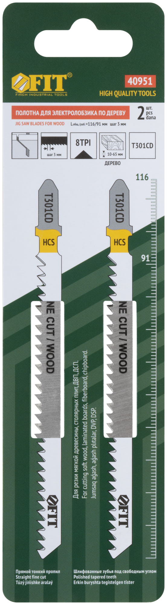 Полотна по дереву, HCS, шлифованные под свободным углом зубья, 116/91/3 мм (T301CD), 2 шт.