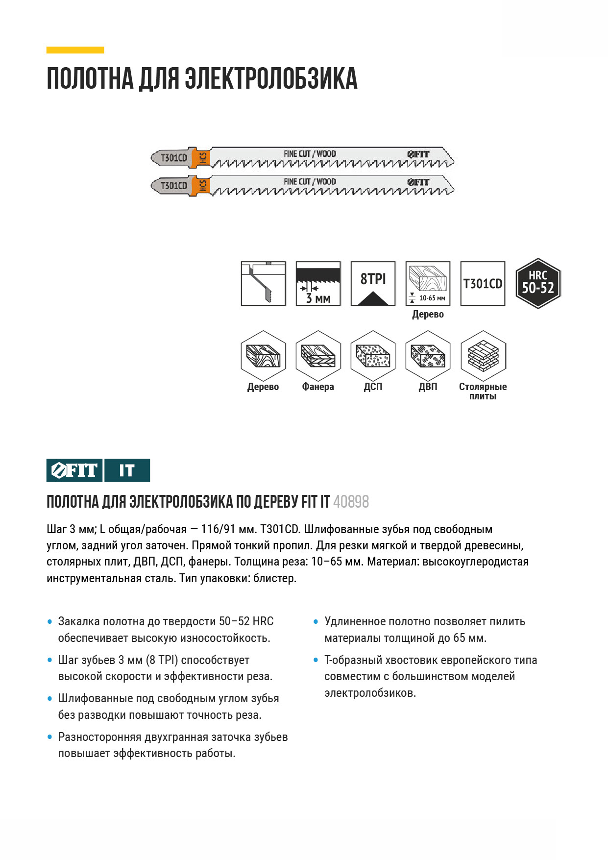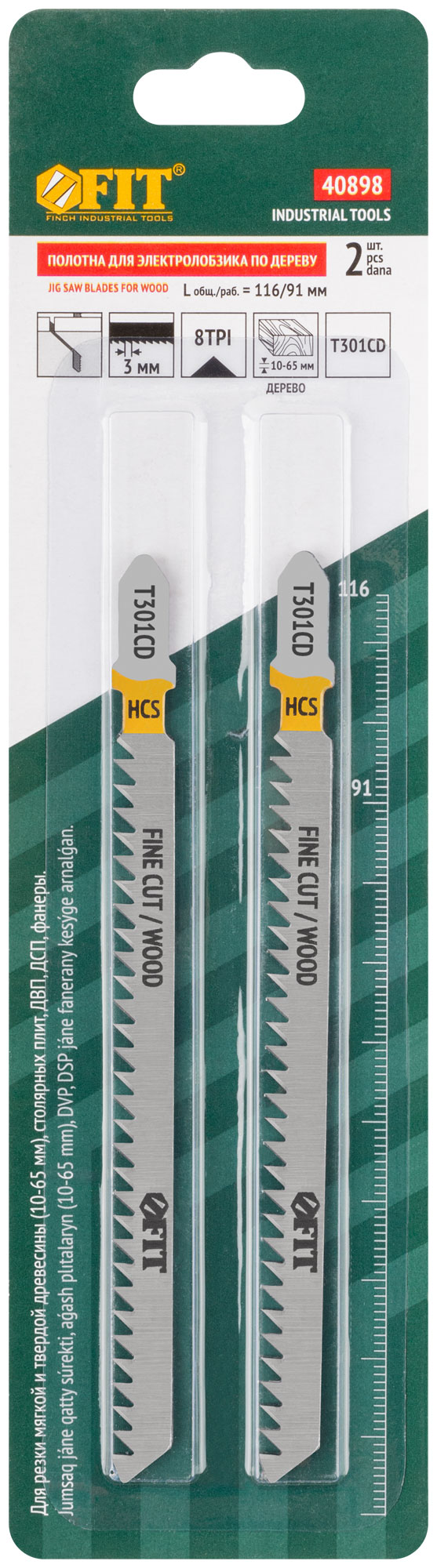 T301CD. Шлифованные зубья под свободным углом, задний угол заточен. Прямой тонкий пропил. Для резки мягкой и твердой древесины, столярных плит, ДВП, ДСП, фанеры. Толщина реза: 10-65 мм. Материал: высокоуглеродистая инструментальная сталь. Упаковка: блистер.