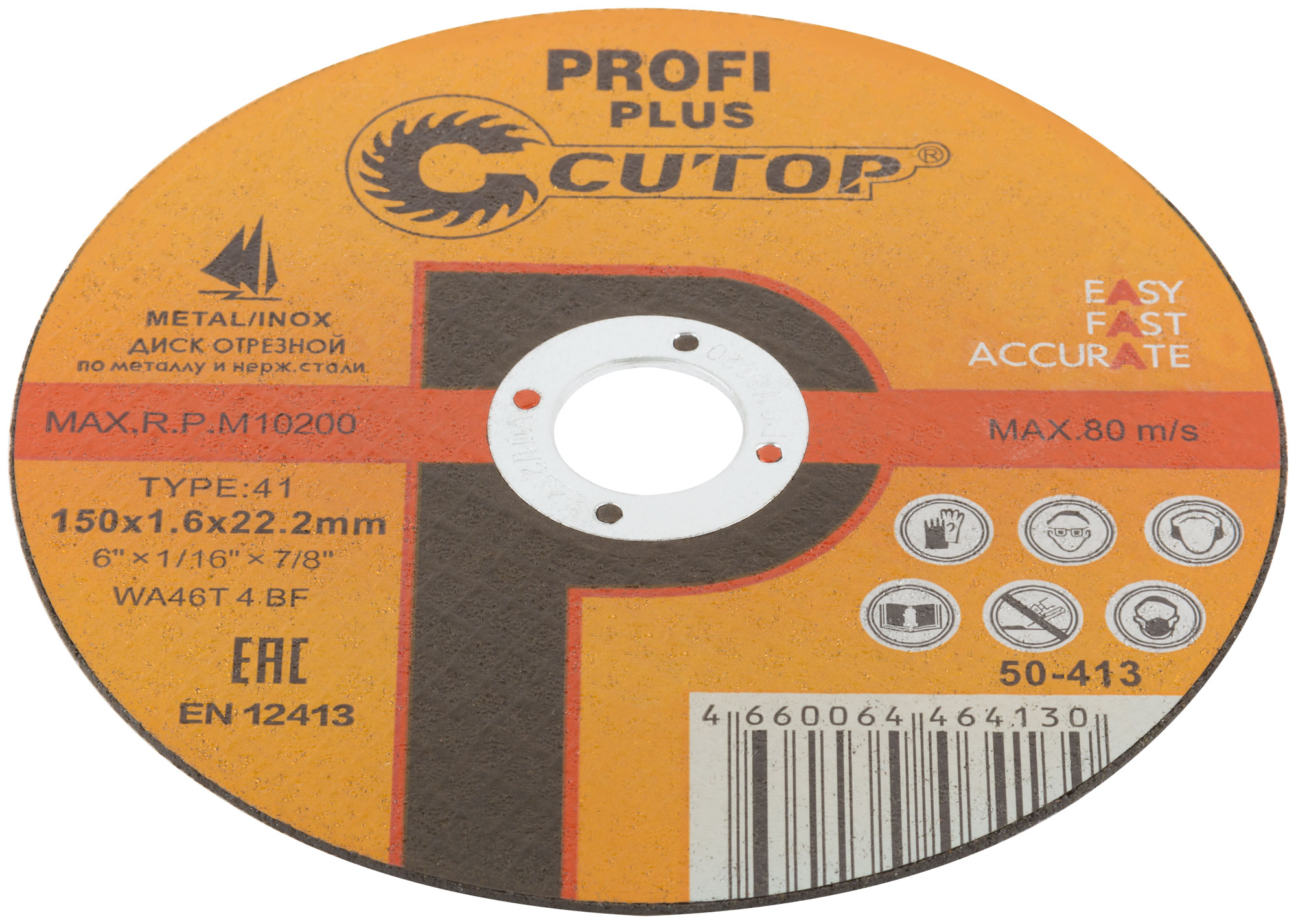 CUTOP Profi PLUS. Использованы уникальные технологии производства. Профессиональный отрезной диск для промышленного использования на основе монокристаллического электрокорунда, который улучшает КПД диска и позволяет увеличить количество резов в несколько раз. Предназначен для резки металла и нержавеющей стали. Для углошлифовальных машин. Посадочный диаметр 22,2 мм.