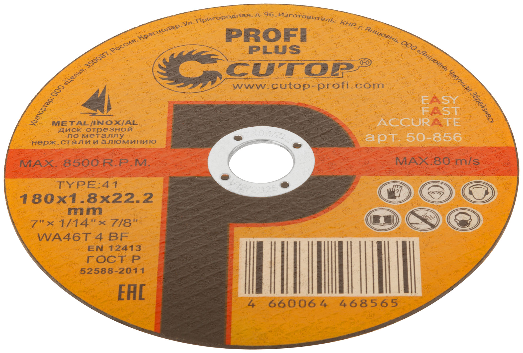 Профессиональный диск отрезной по металлу, нержавеющей стали и алюминию Cutop Profi Plus, Т41-180 х 1,8 х 22,2 мм