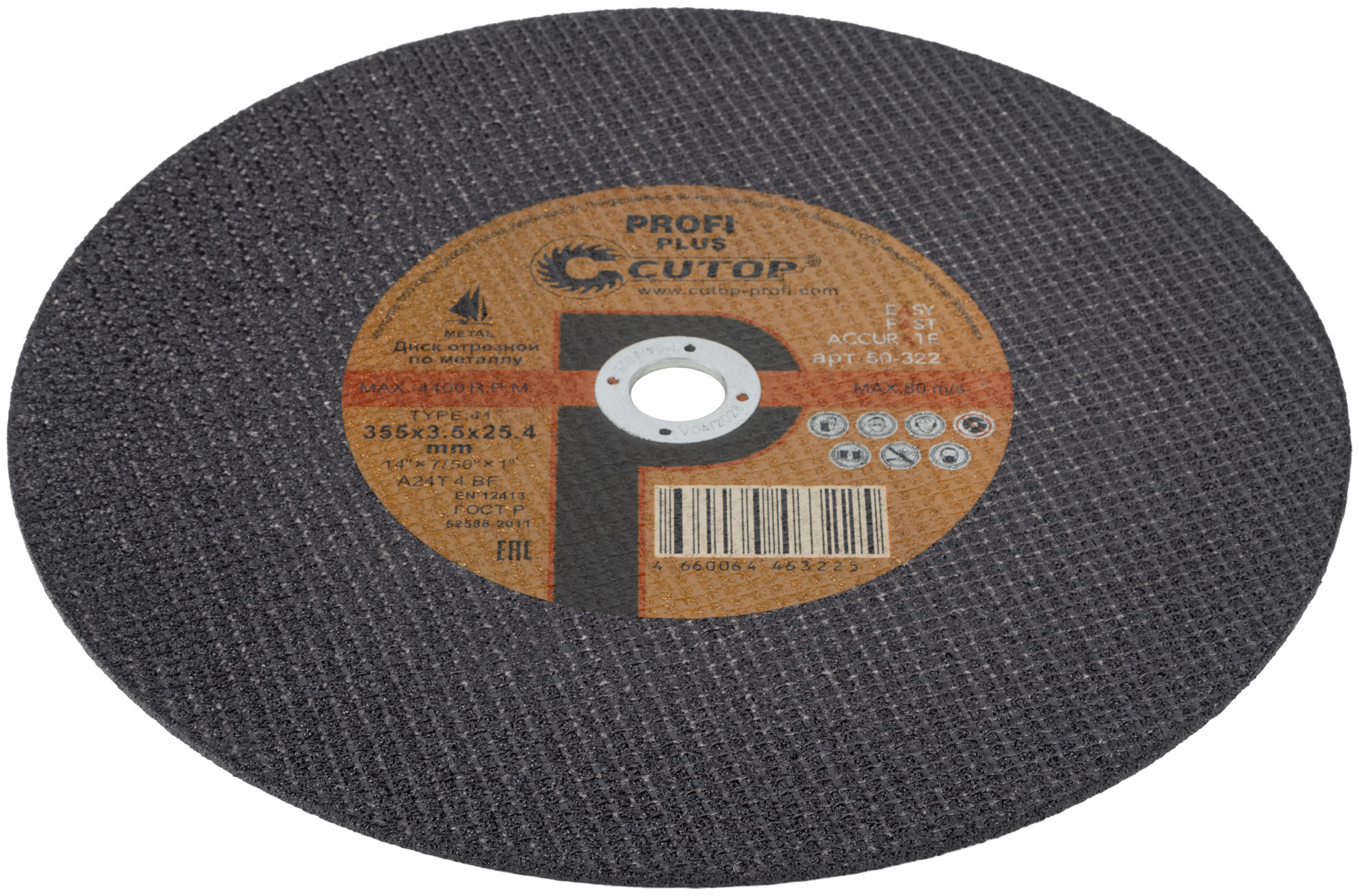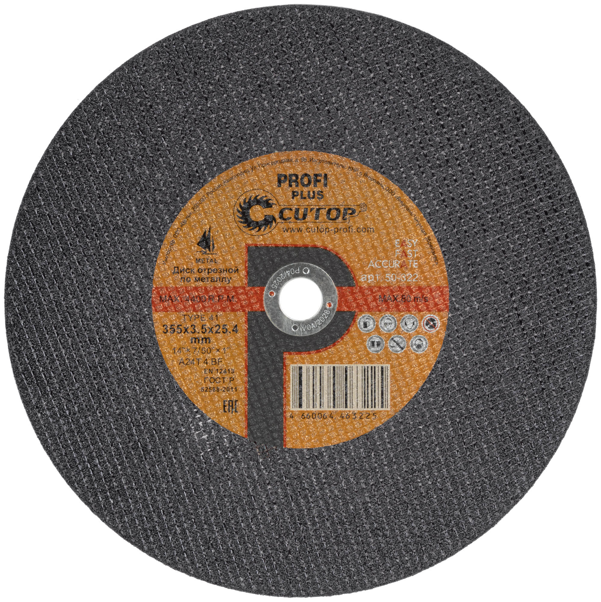 Профессиональный диск отрезной по металлу Т41-355 х 3,5 х 25,4 мм, Cutop Profi Plus