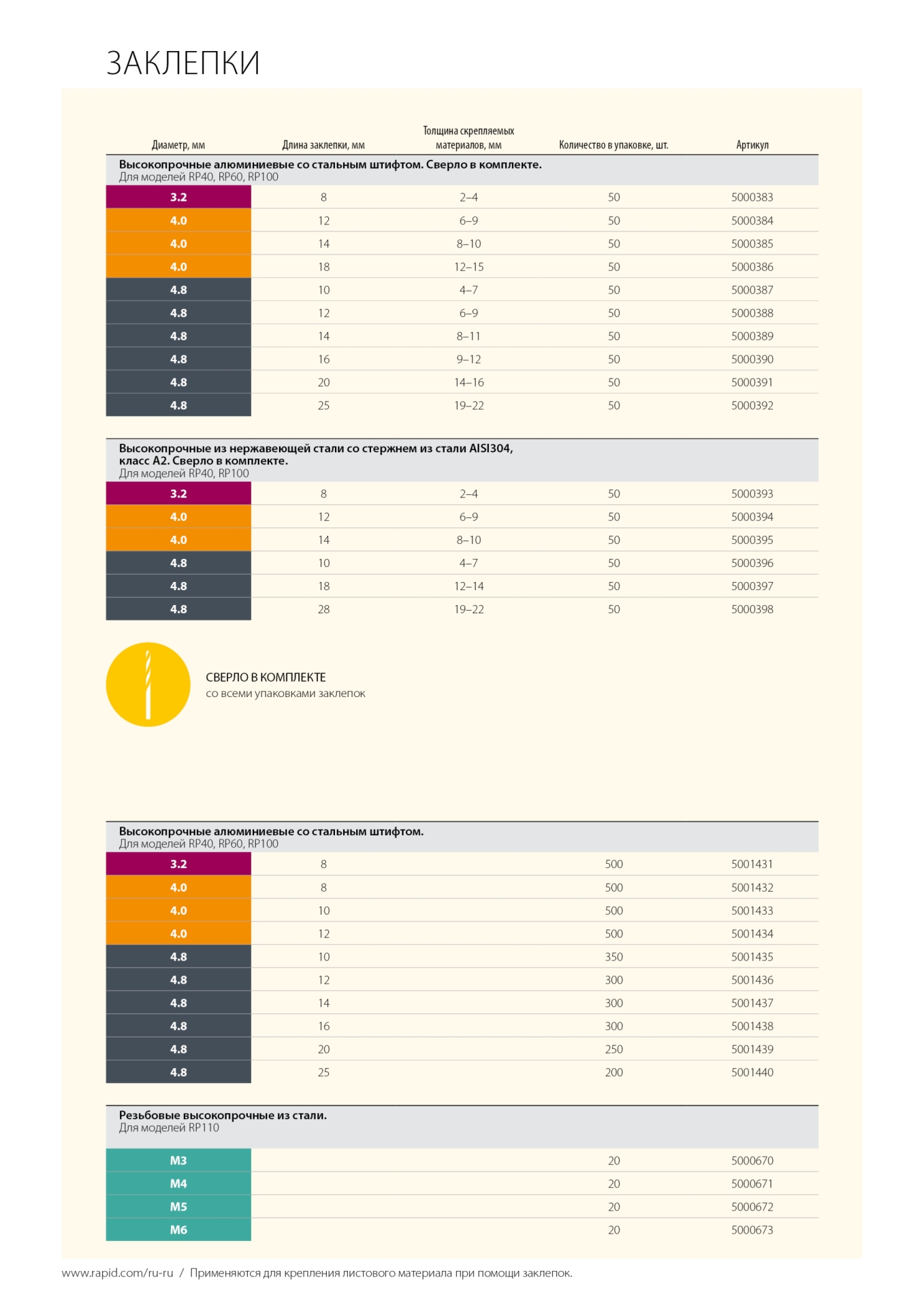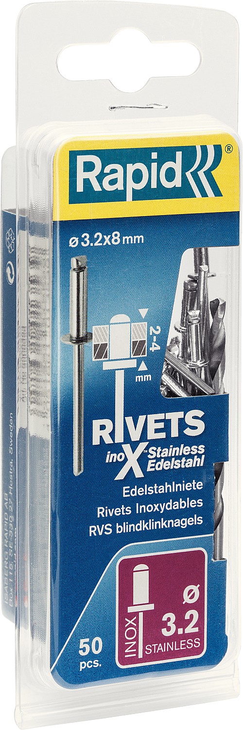 Эти прочные заклепки из нержавеющей стали изготовлены из очень твердого материала, который рассчитан на больший срок службы, нежели соединяемые материалы. Эти заклепки, специально созданные для использования вне помещений или в условиях повышенной влажности, идеальны для крепления номерных знаков, брызговиков, металлических покрытий, постройки теплиц, ремонта газонокосилок или устройства кровли из листового металла. Сверло соответствующего размера входит в комплект поставки.