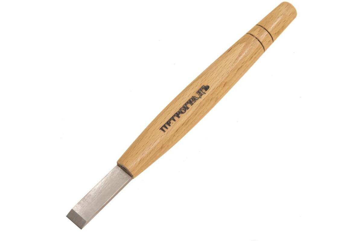 Резчицкая стамеска 10мм Петроградъ М00013981 представляет собой удобный инструмент, который способен снимать тонкий слой древесины и выполнять более сложные работы в руках резчика.