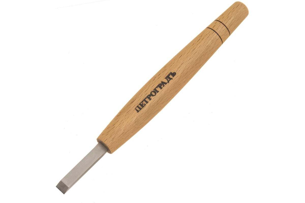 Резчицкая стамеска 6мм Петроградъ М00013979 представляет собой удобный инструмент, который способен снимать тонкий слой древесины и выполнять более сложные работы в руках резчика.
