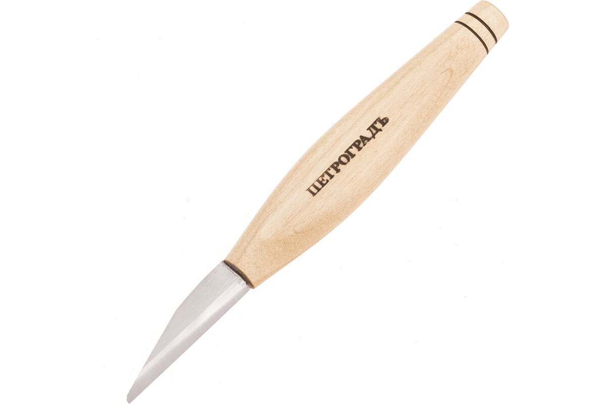 Резчицкий нож 195мм/55мм Петроградъ Рыбка М00014277 оснащен лезвием значительной длины, что позволяет успешно снимать большой слой древесины. Модель универсальна, что обеспечивает широкую область применения.