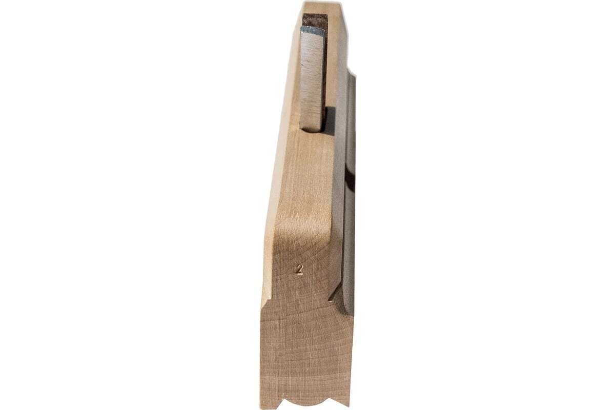 Рубанок-калёвка Петроградъ, N2 М000 14896 применяется для изготовления рамок и фризов. Используется для формирования готового профиля с возможностью комбинирования с другими профилями для получения желаемого результата. Колодка выполнена из клёна и покрыта тунговым маслом. Нож выполнен из высококачественной стали 9ХС полной закалки, что обеспечивает прочность и долговечность. Угол наклона составляет 55 градусов.