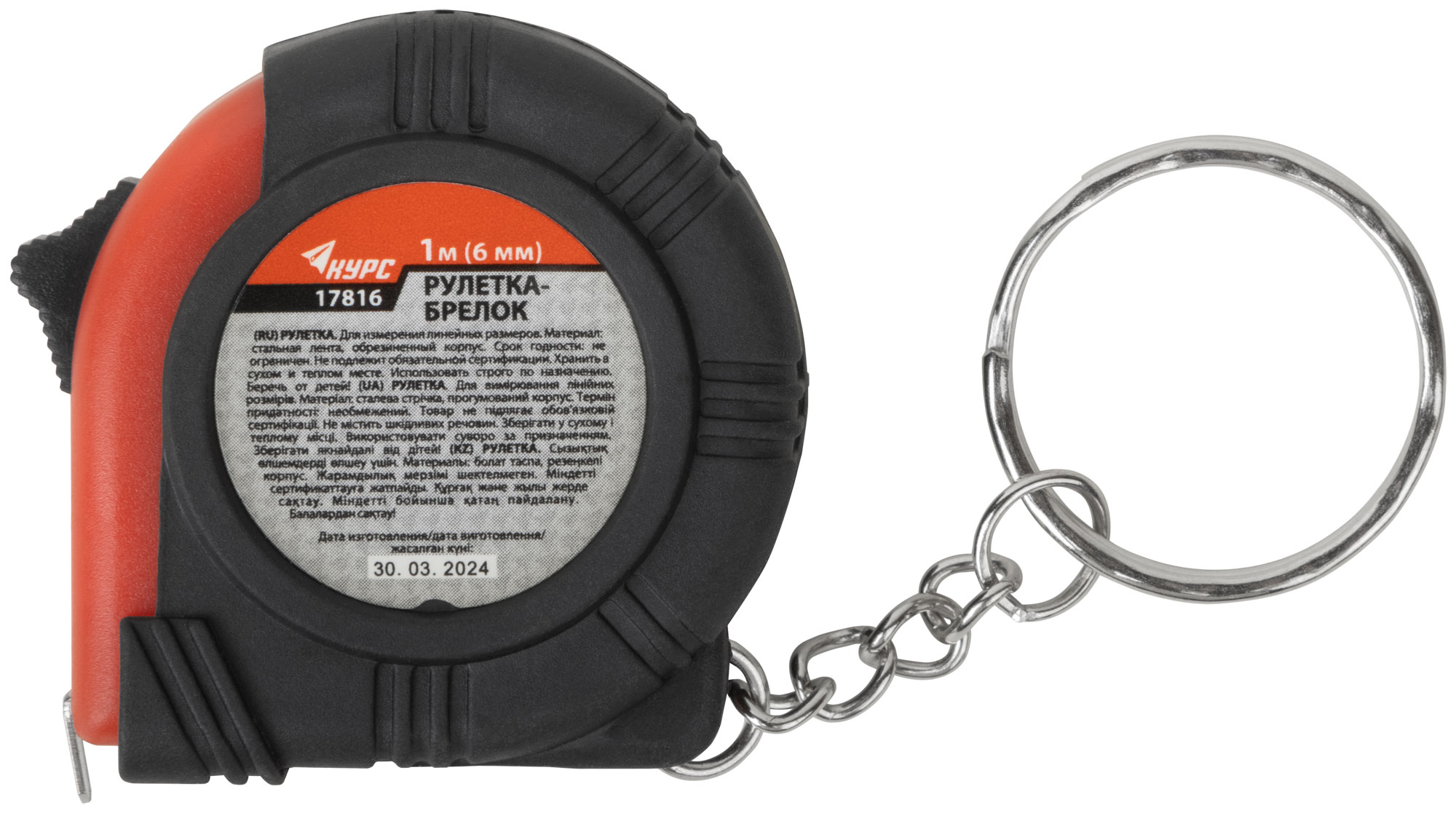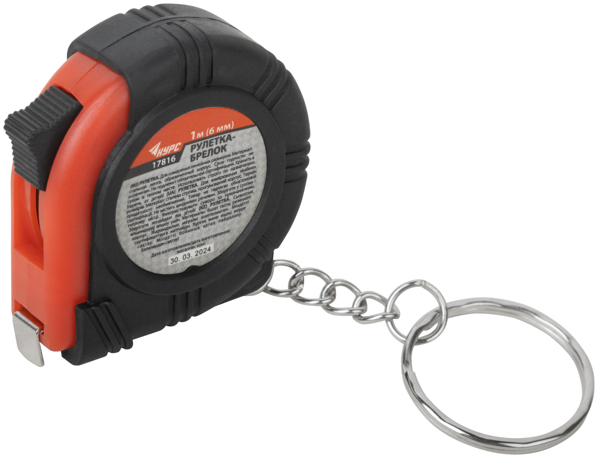 Рулетка-брелок, обрезиненный корпус 1 м х 6 мм