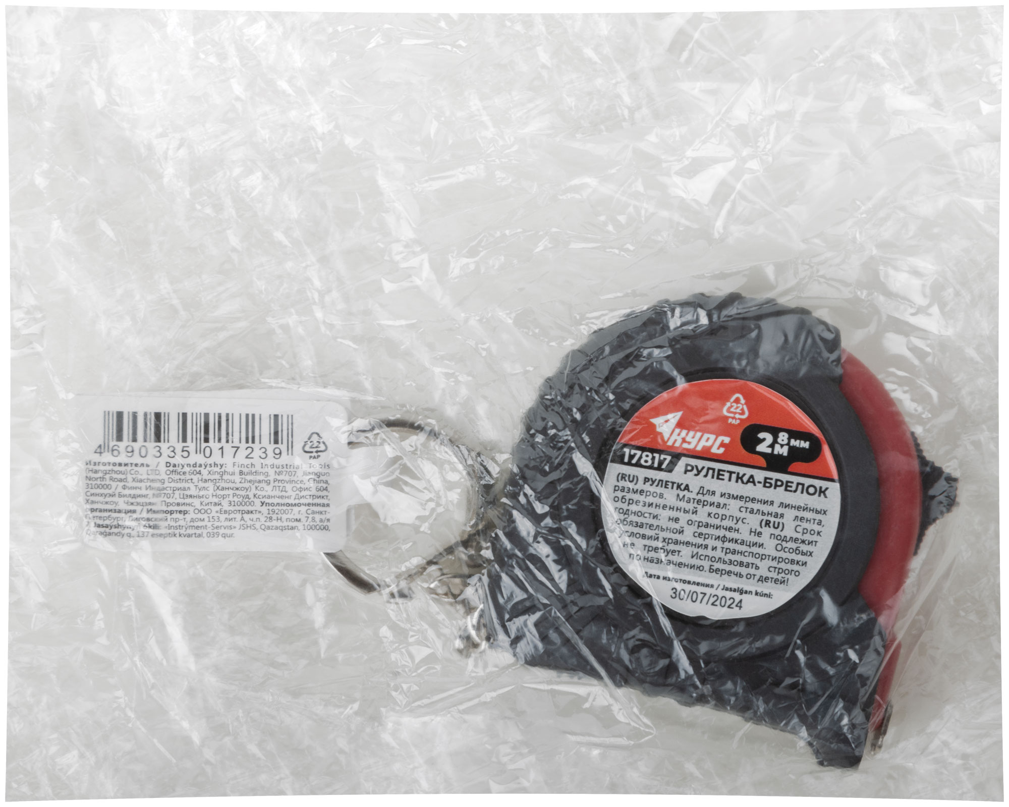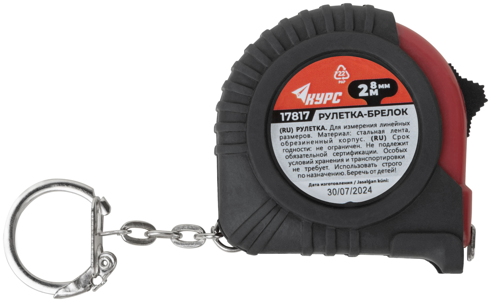 Рулетка-брелок, обрезиненный корпус 2 м х 8 мм
