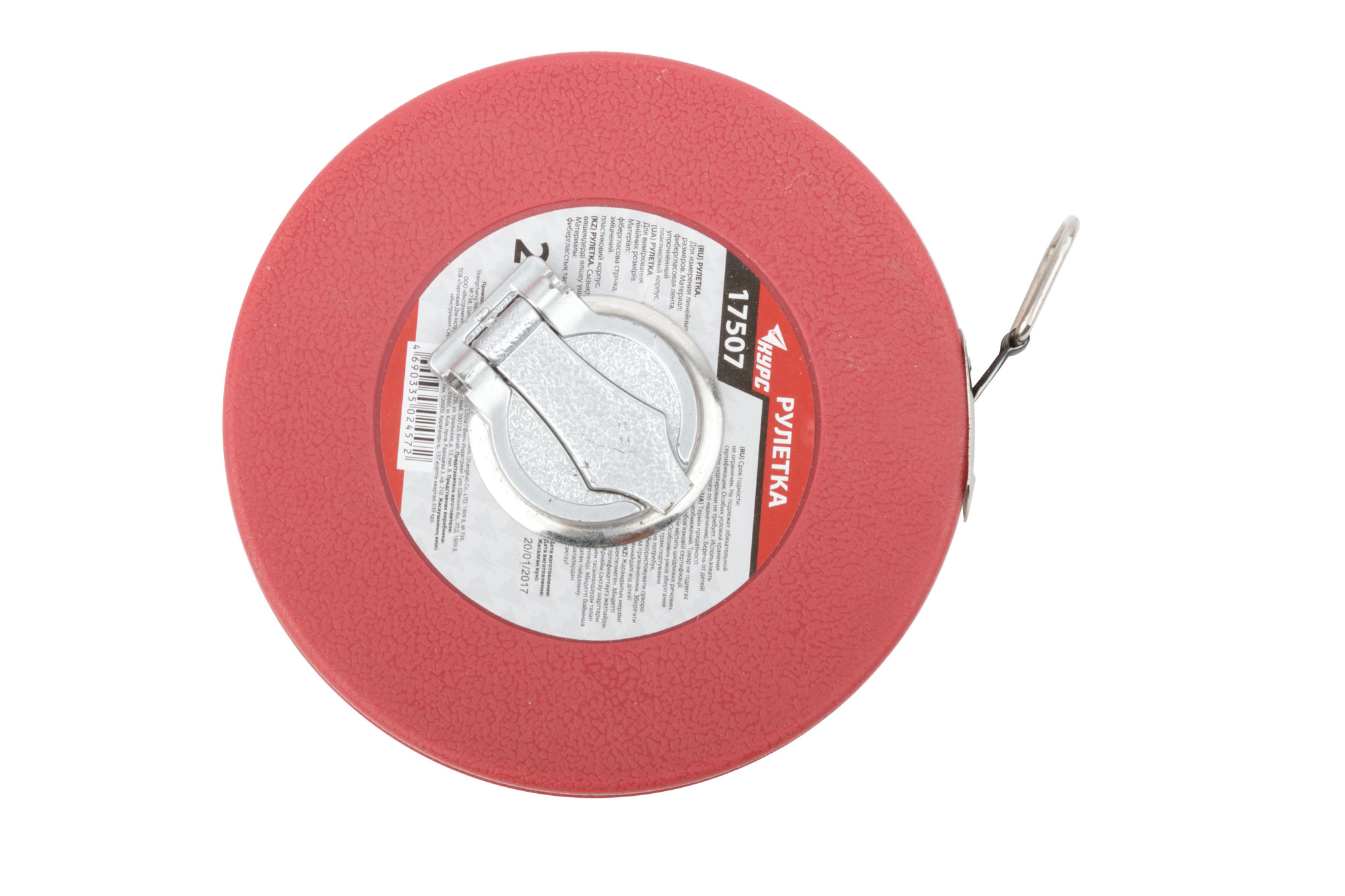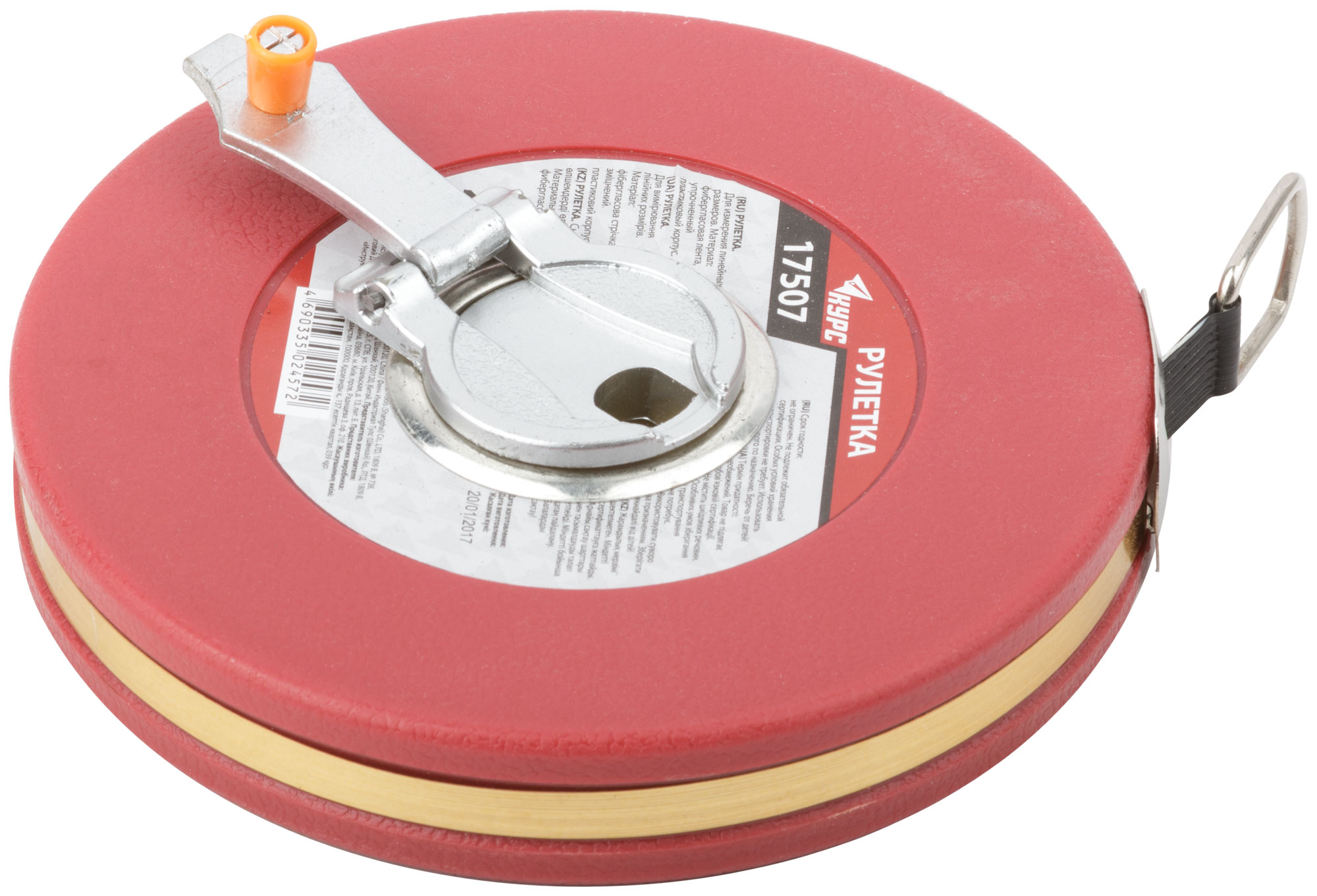 Рулетка, фибергласовая лента, красный пластиковый корпус 20 м