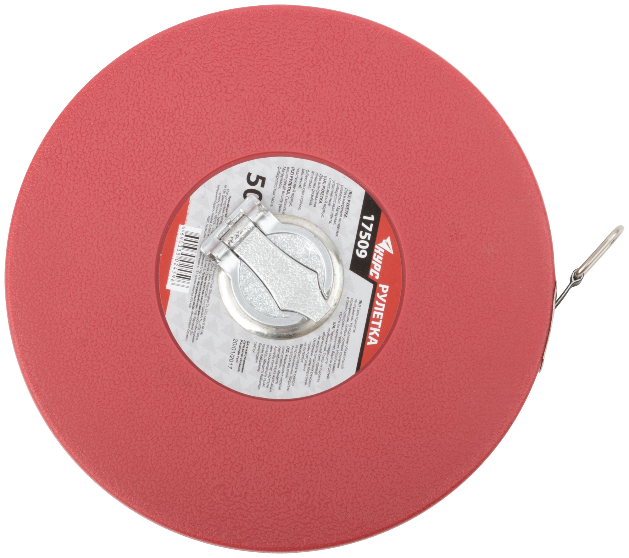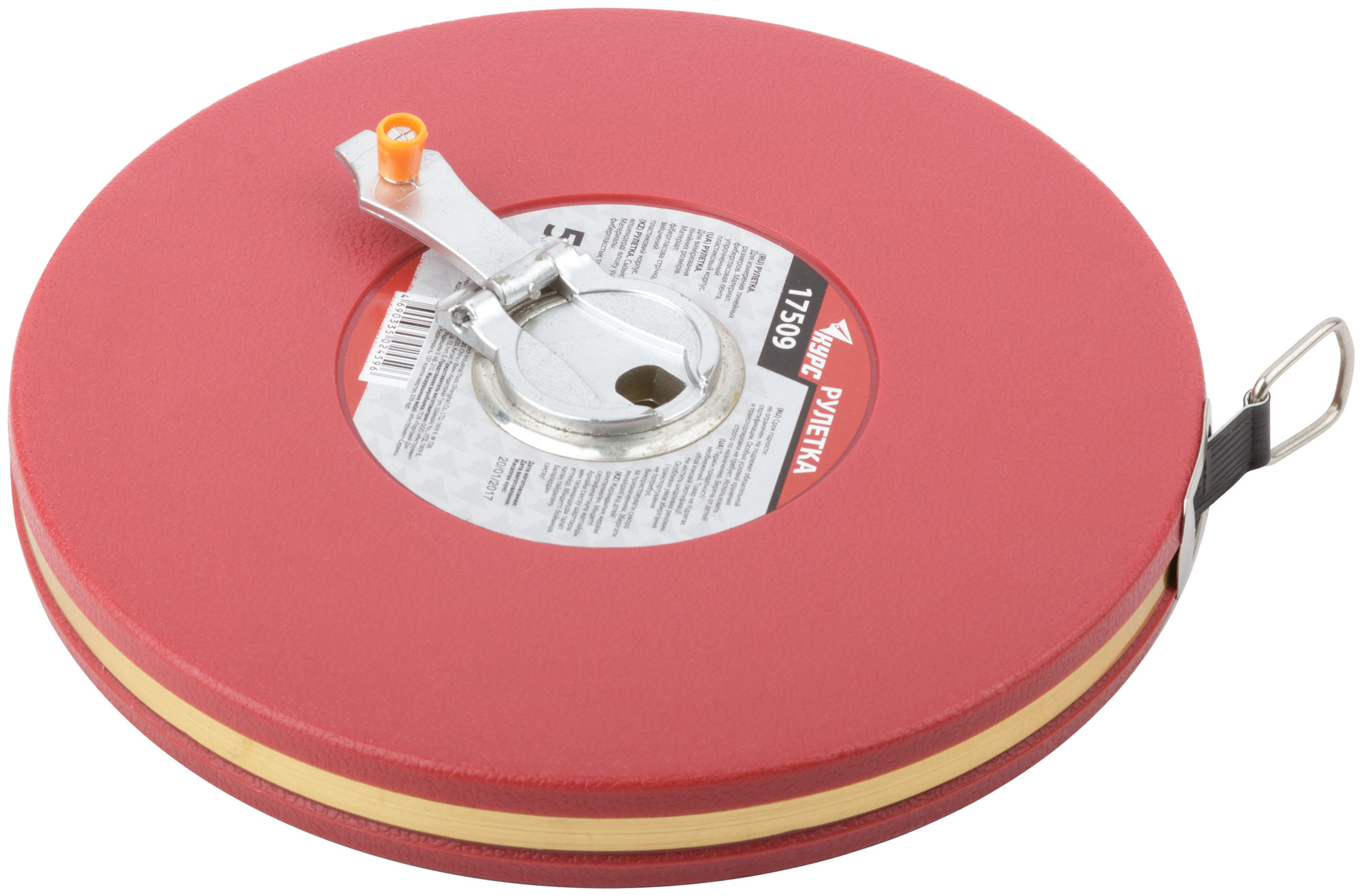 Рулетка, фибергласовая лента, красный пластиковый корпус 50 м