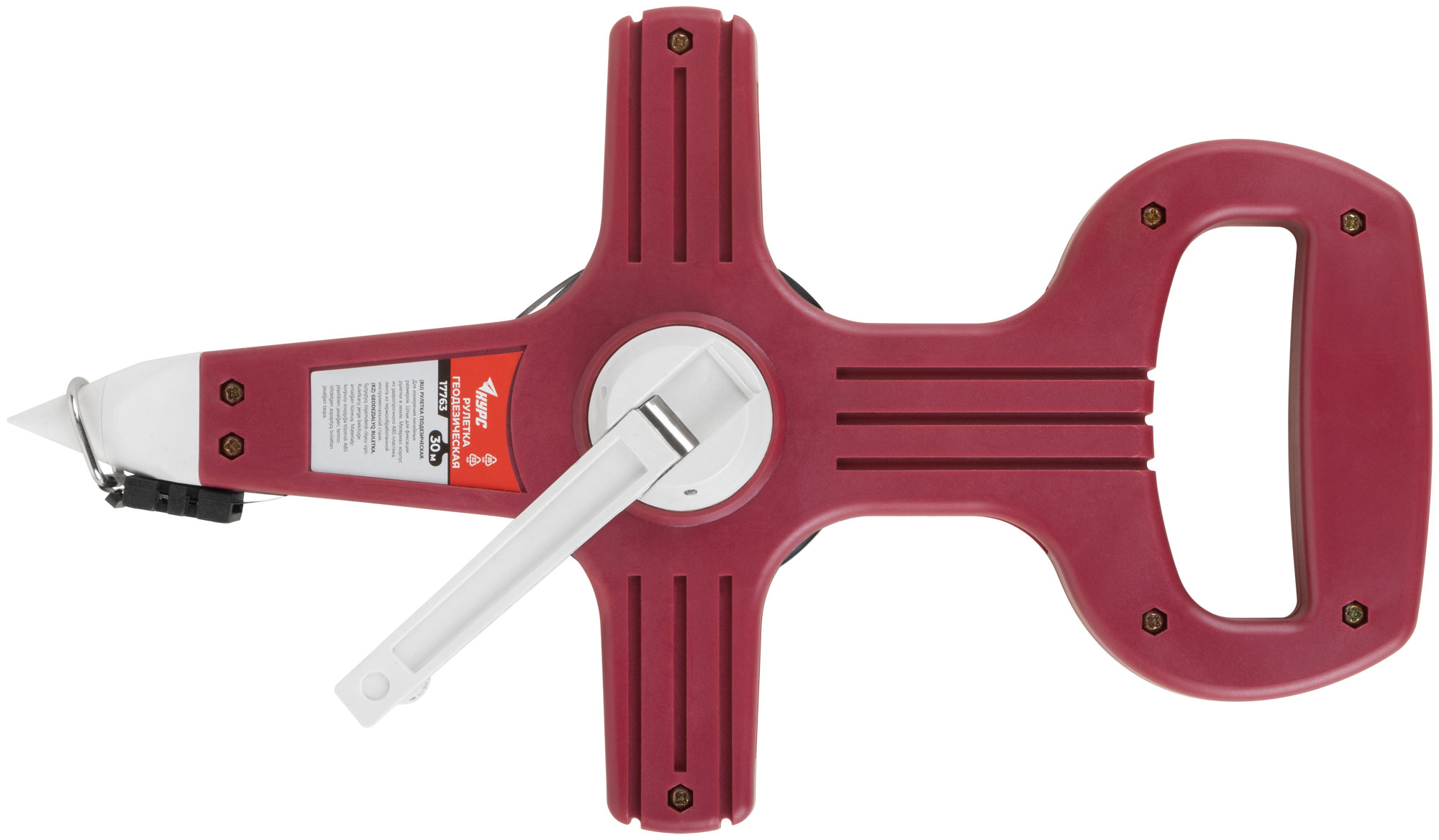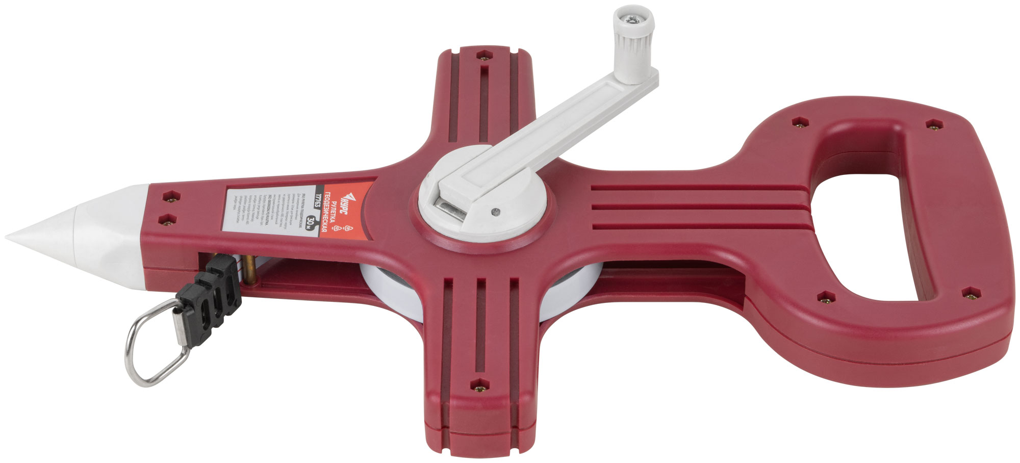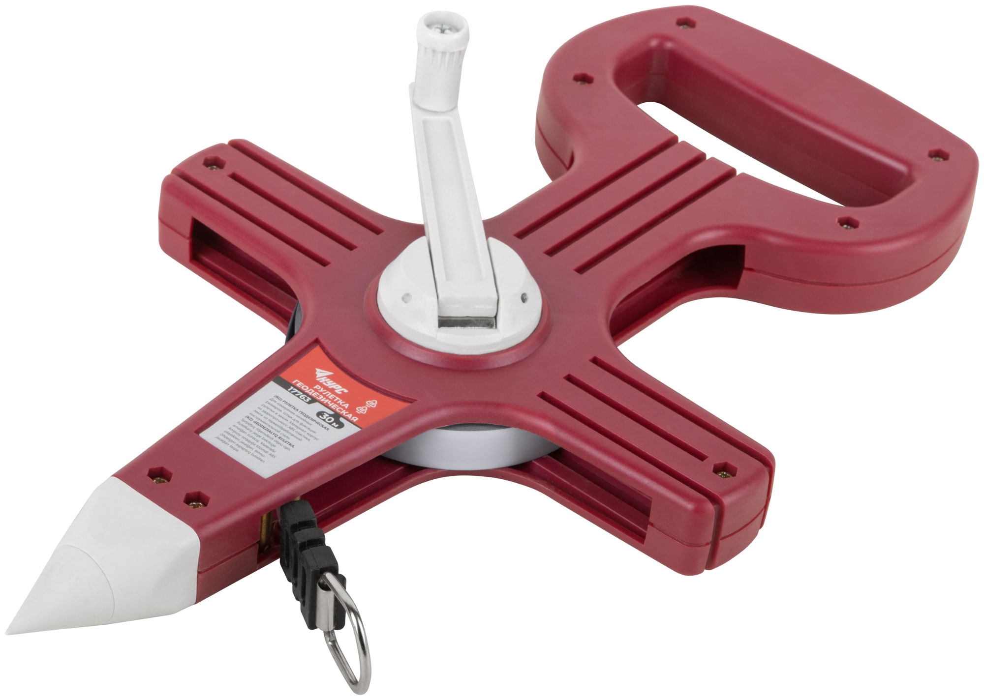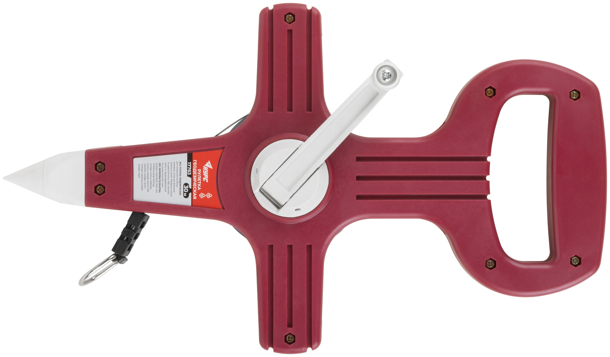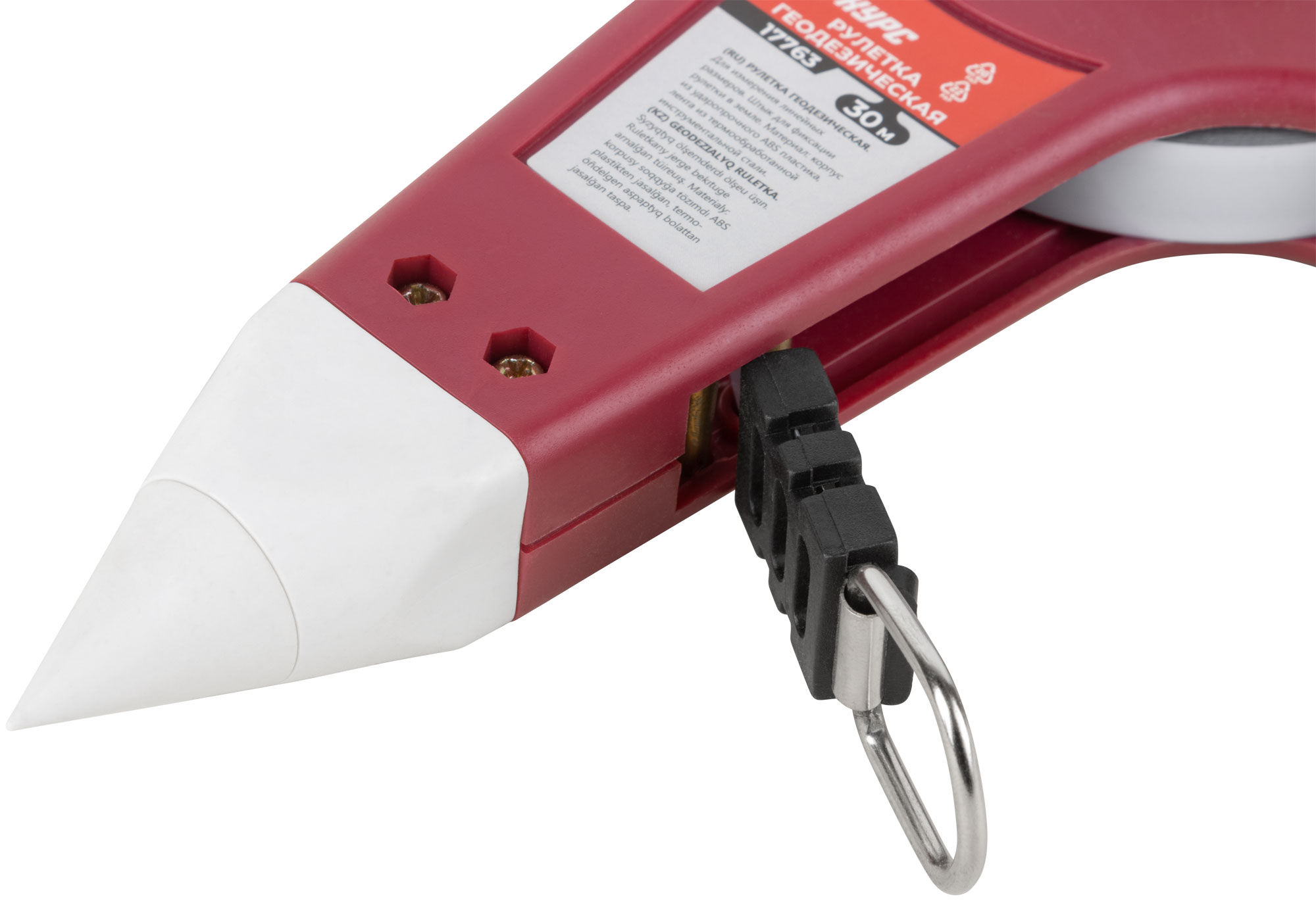 Со штыком для фиксации рулетки в земле при измерении больших длин. Материал: стальная лента, пластиковый корпус.
