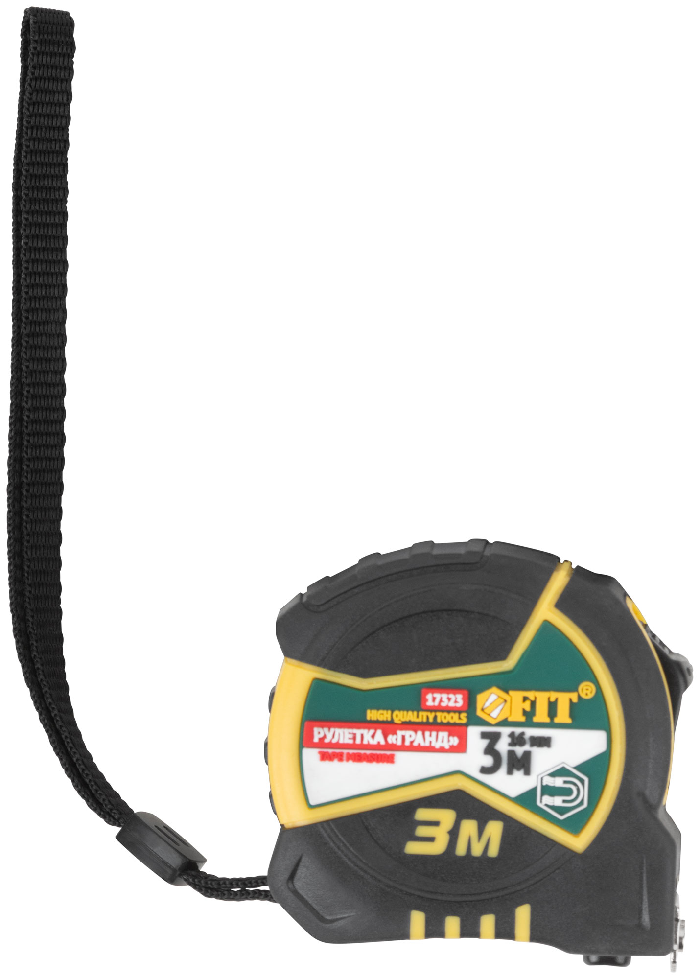 Рулетка "Гранд", калибр.лента, нейлон.покр., магн.крючок, двойной стопор, прорезин.корпус 3 м х 16 мм