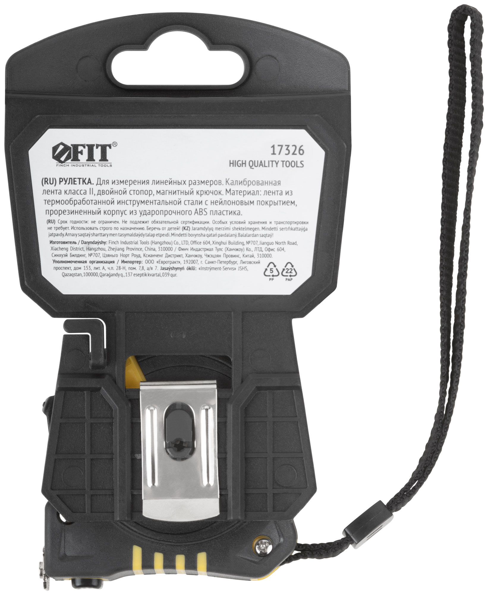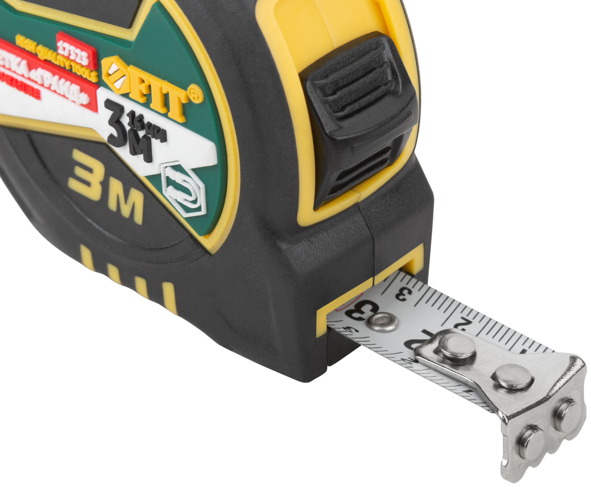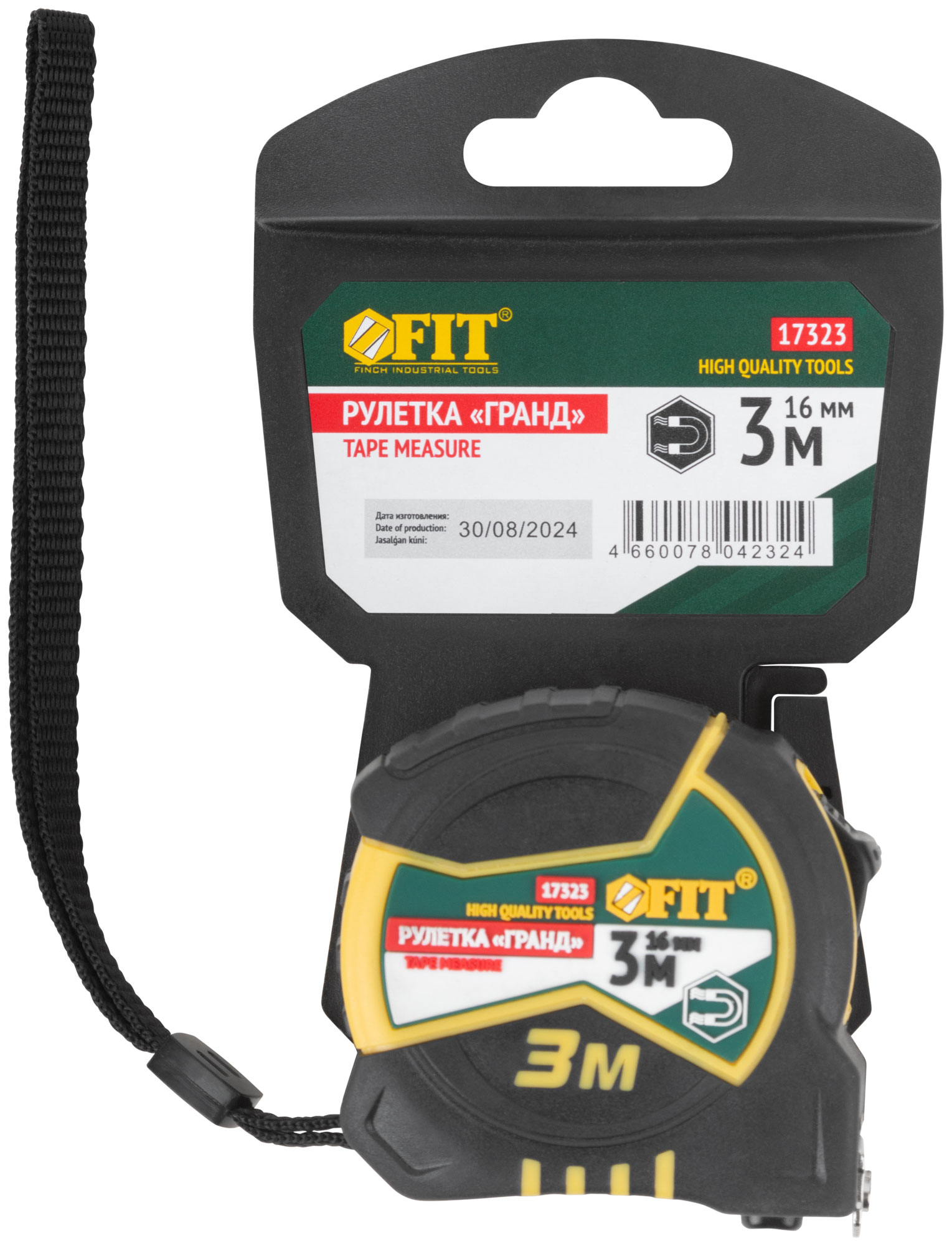 «Гранд». Калиброванная лента класс II, двойной стопор, магнитный крючок. Материал: стальная лента с нейлоновым покрытием, прорезиненный корпус из ударопрочного ABS пластика. Упаковка: пластиковый подвес.