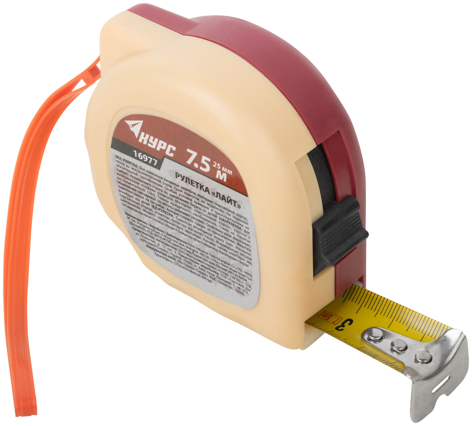 Рулетка пластиковая 2-х цветная "Лайт" 7,5 м x 25 мм