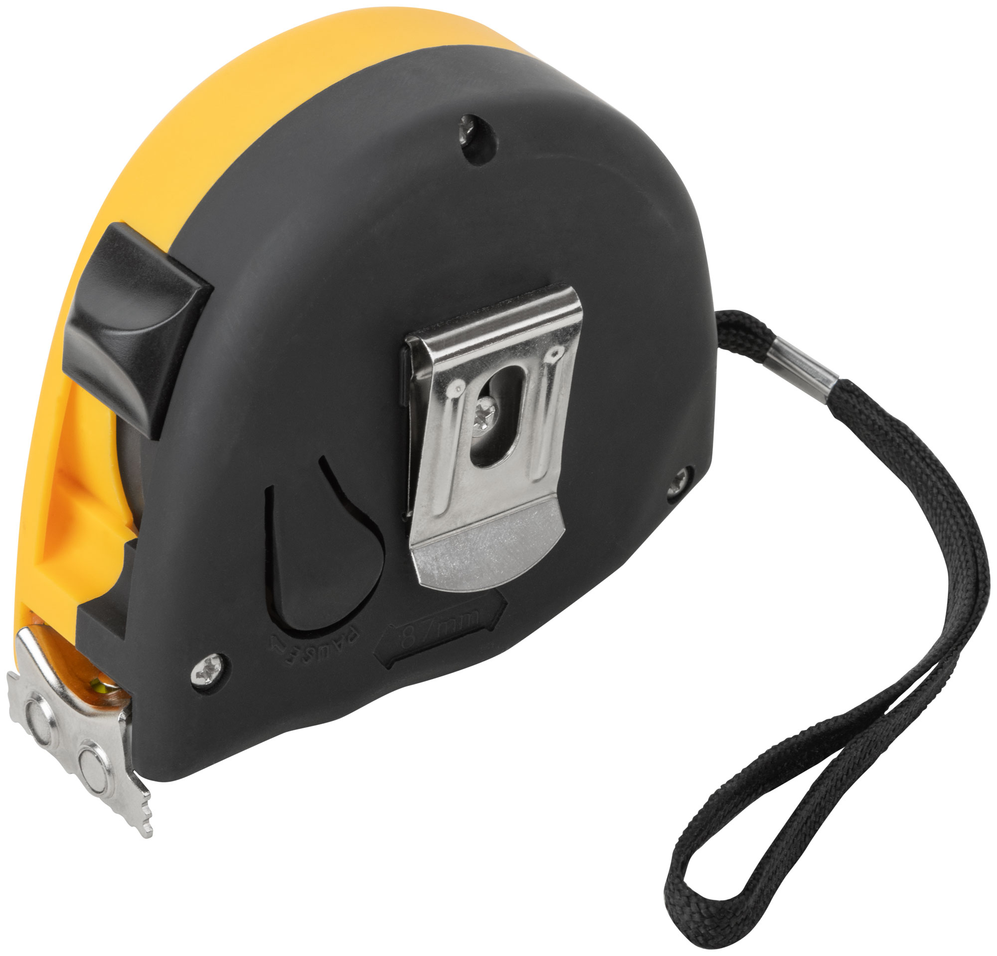 Рулетка Профи, калибр.лента, нейл.покр., магн.крючок, эласт.корпус черн-желт., двойн.стопор 7,5 м х 25 мм