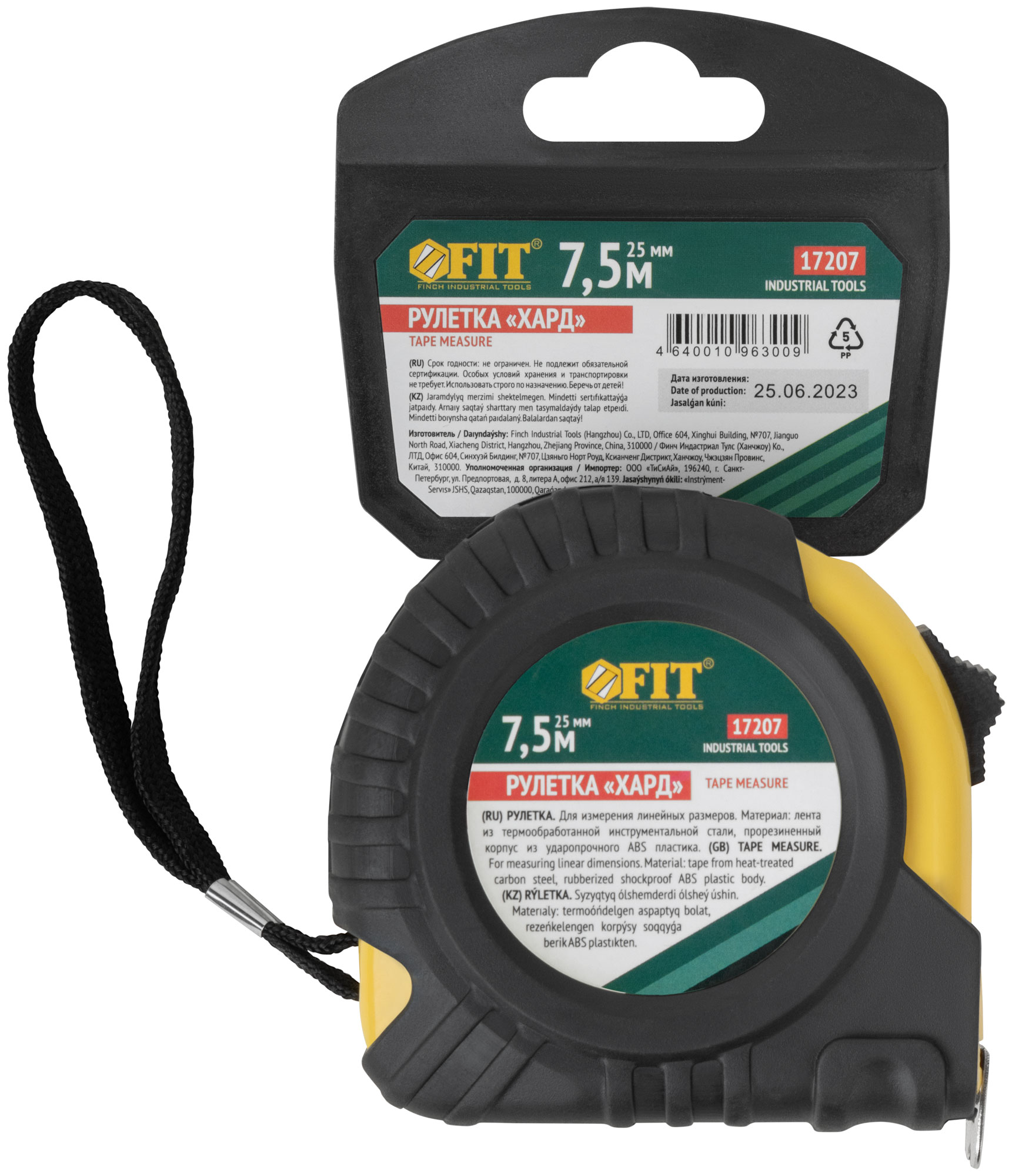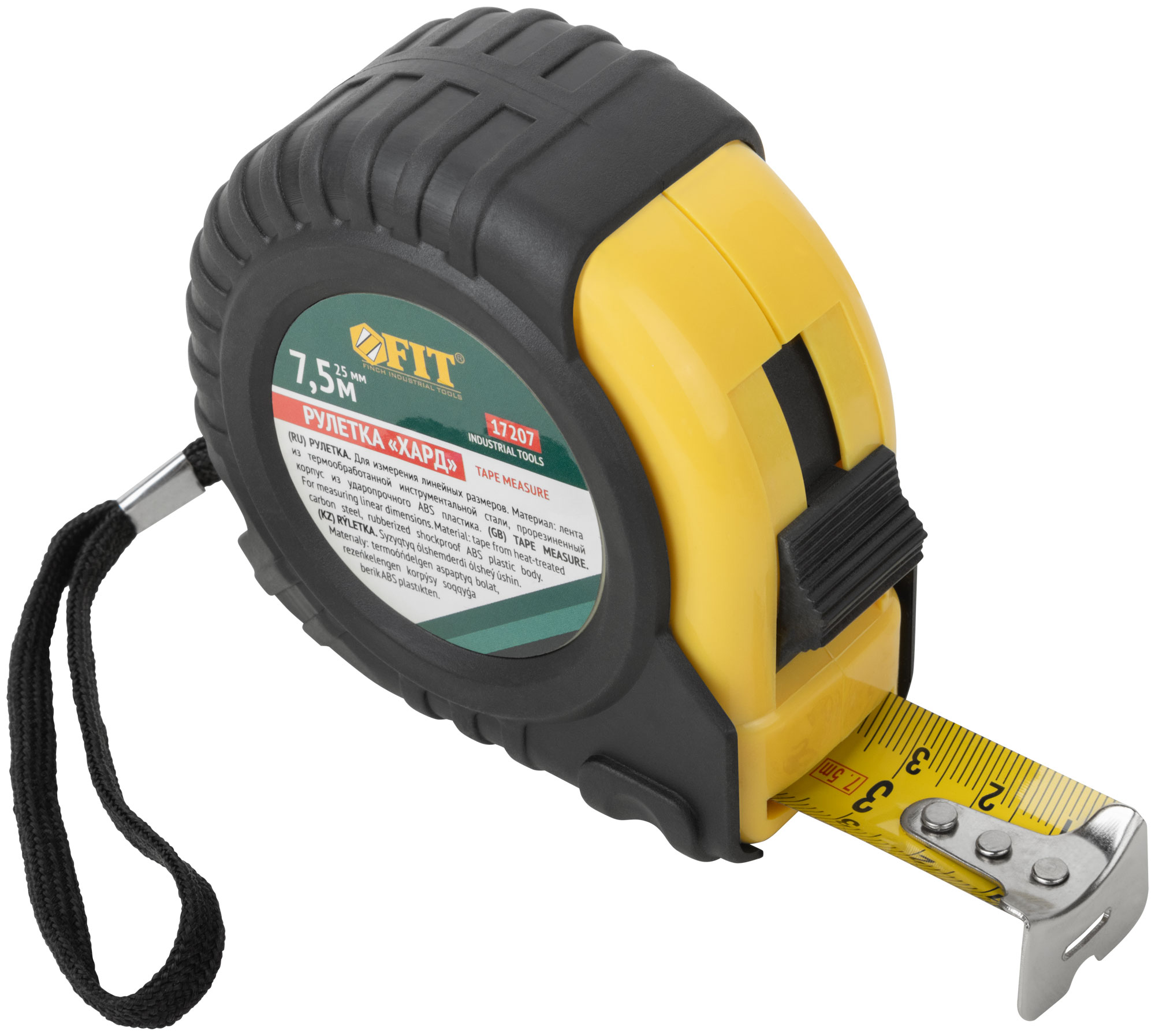 Рулетка прорезиненный корпус "Хард" 7,5 м x 25 мм