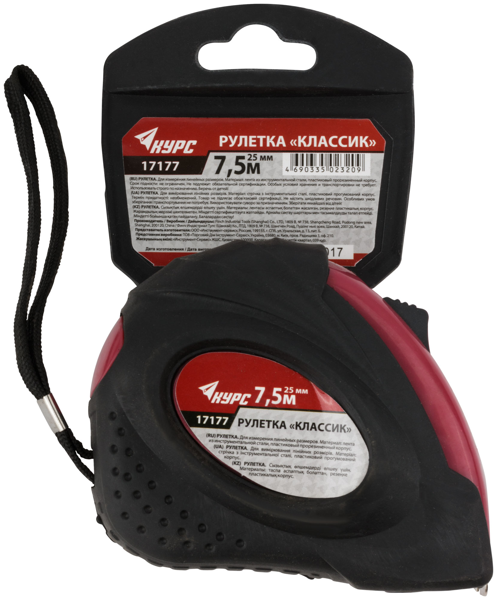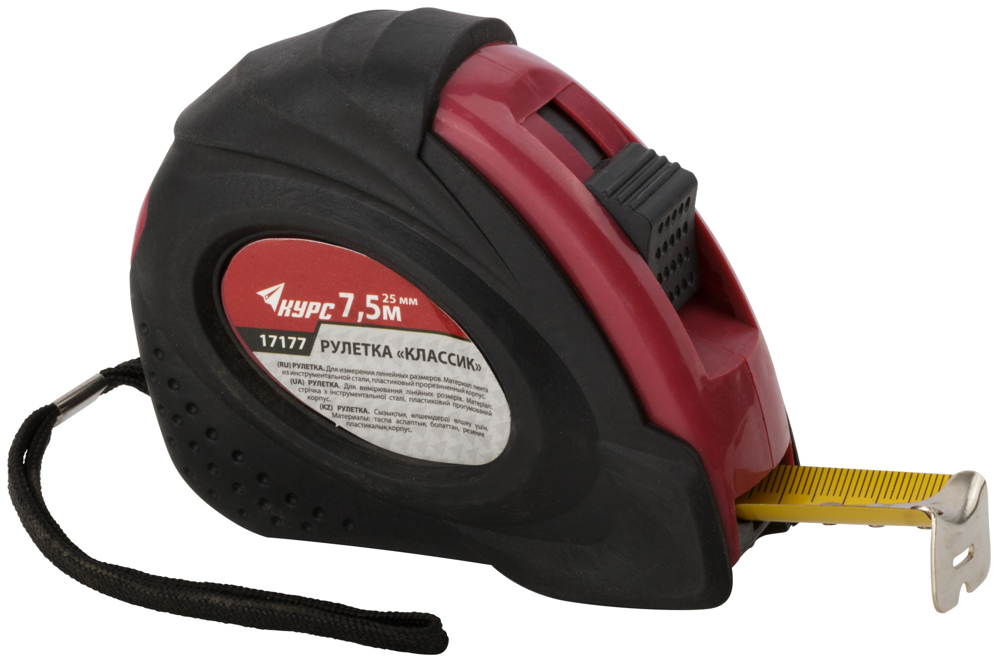 Рулетка прорезиненный корпус "Классик" 7,5 м x 25 мм