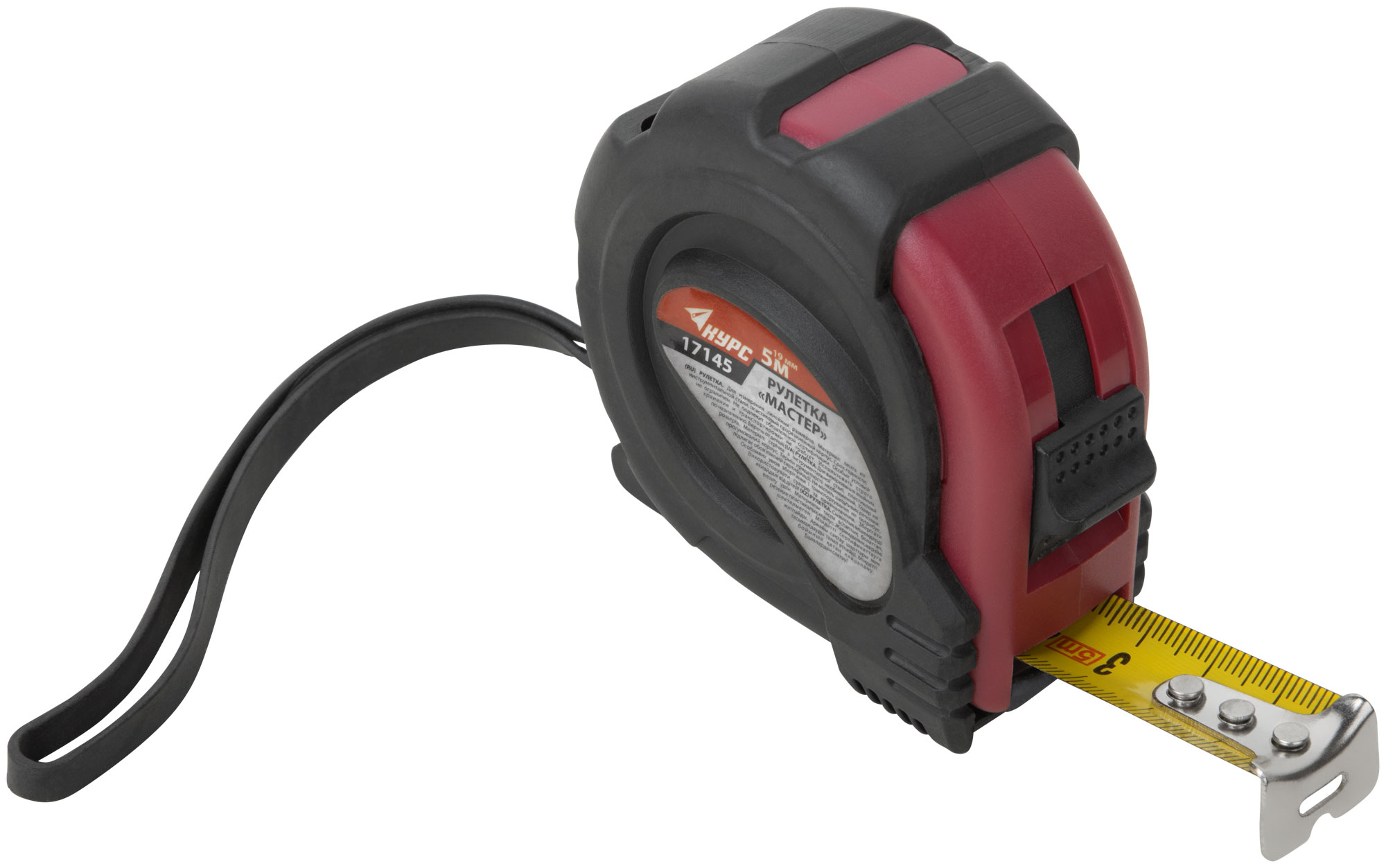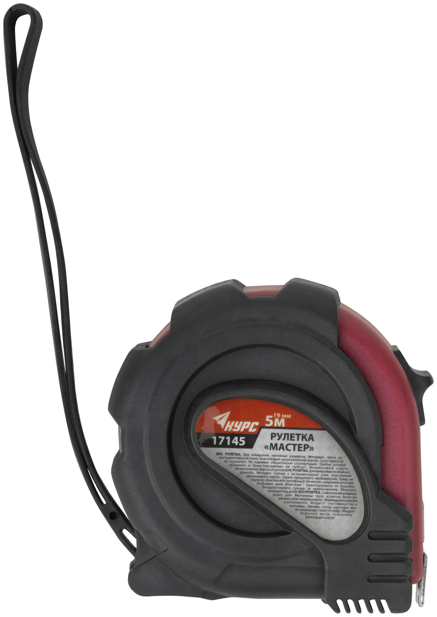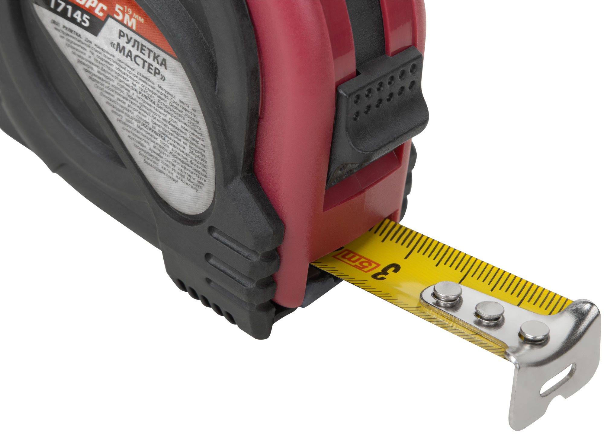 «Мастер». Материал: обрезиненный ABS пластиковый противоударный корпус, стальная лента. Упаковка: пластиковый подвес.