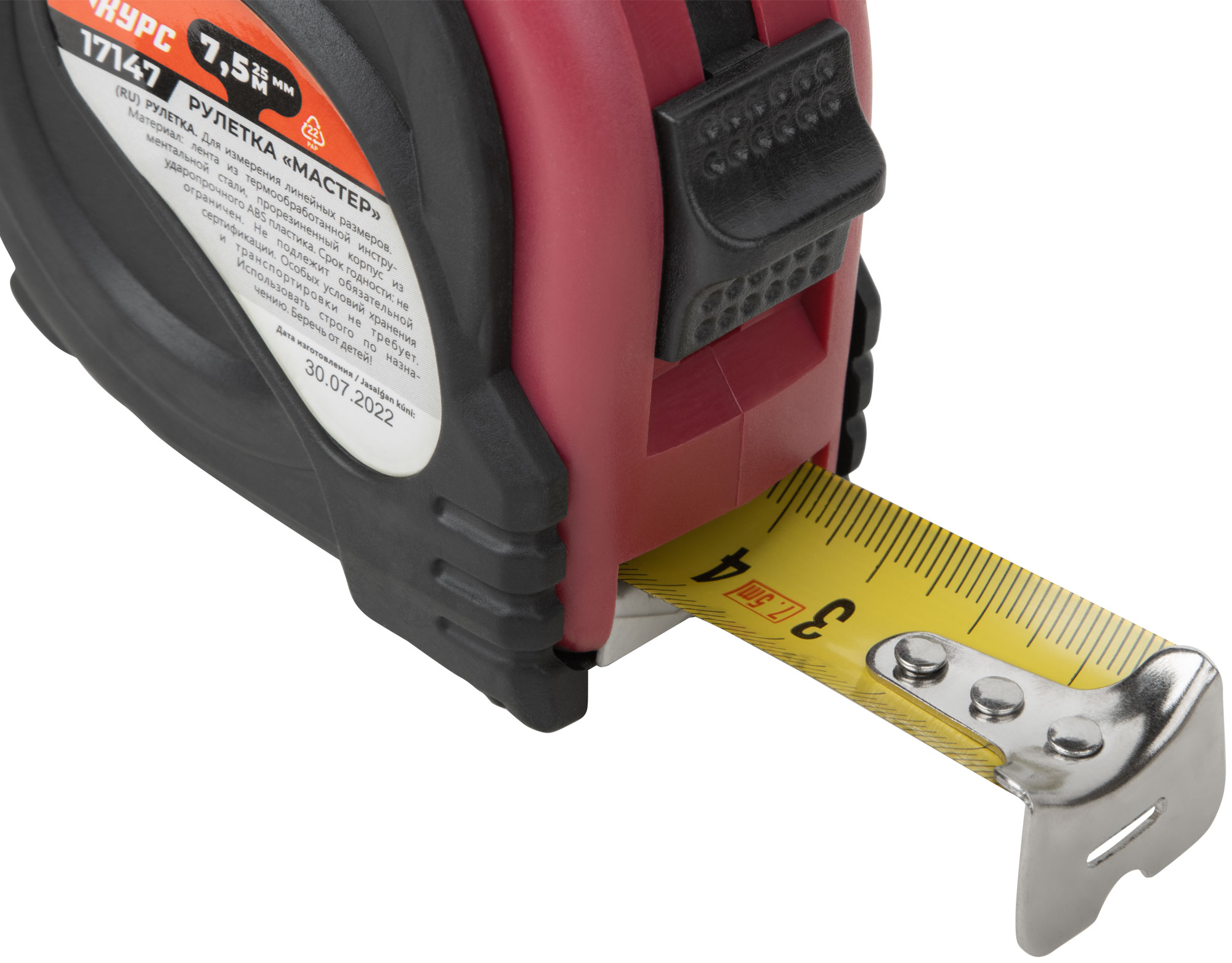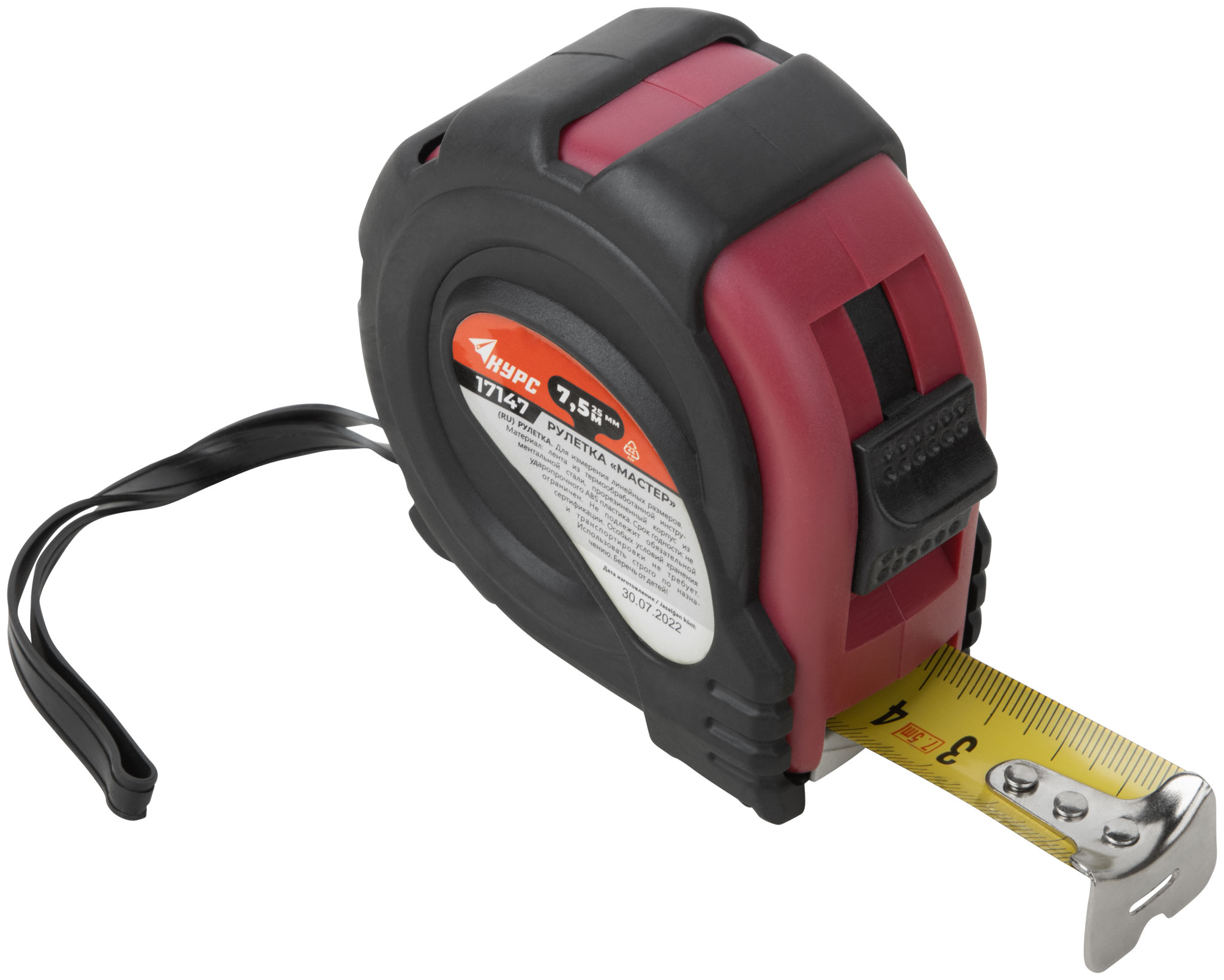 Рулетка прорезиненный корпус "Мастер" 7,5 м x 25 мм