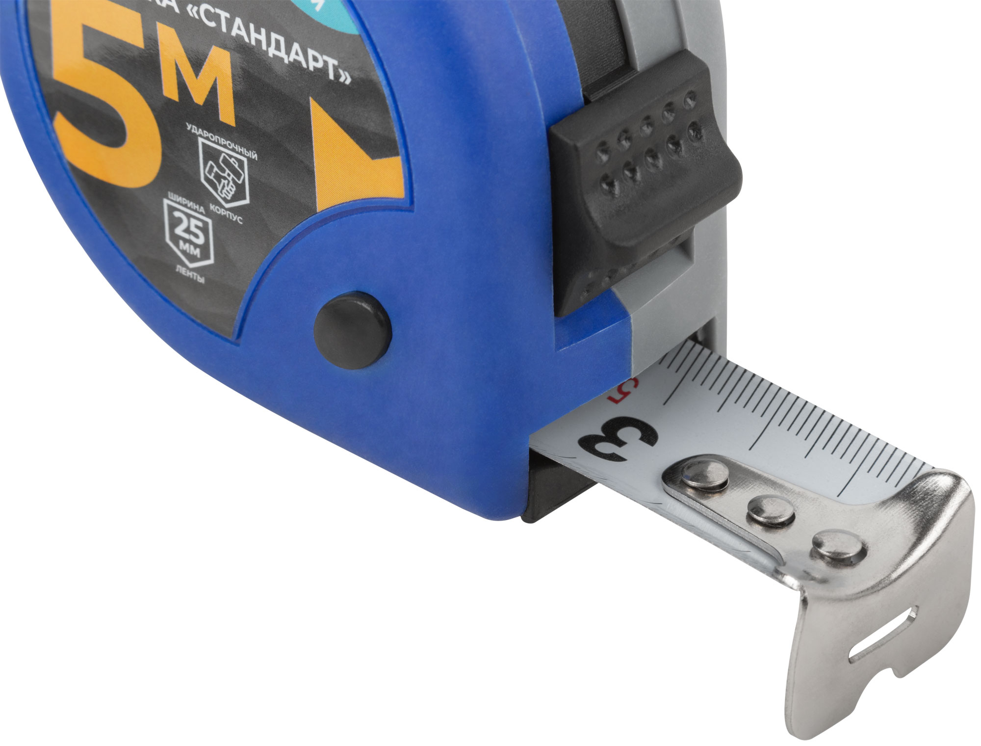 «Стандарт». Предназначена для выполнения замеров и нанесения разметки. Двойной стопор. Материал: стальная лента, корпус из ударопрочного ABS пластика. Упаковка: пластиковый подвес.