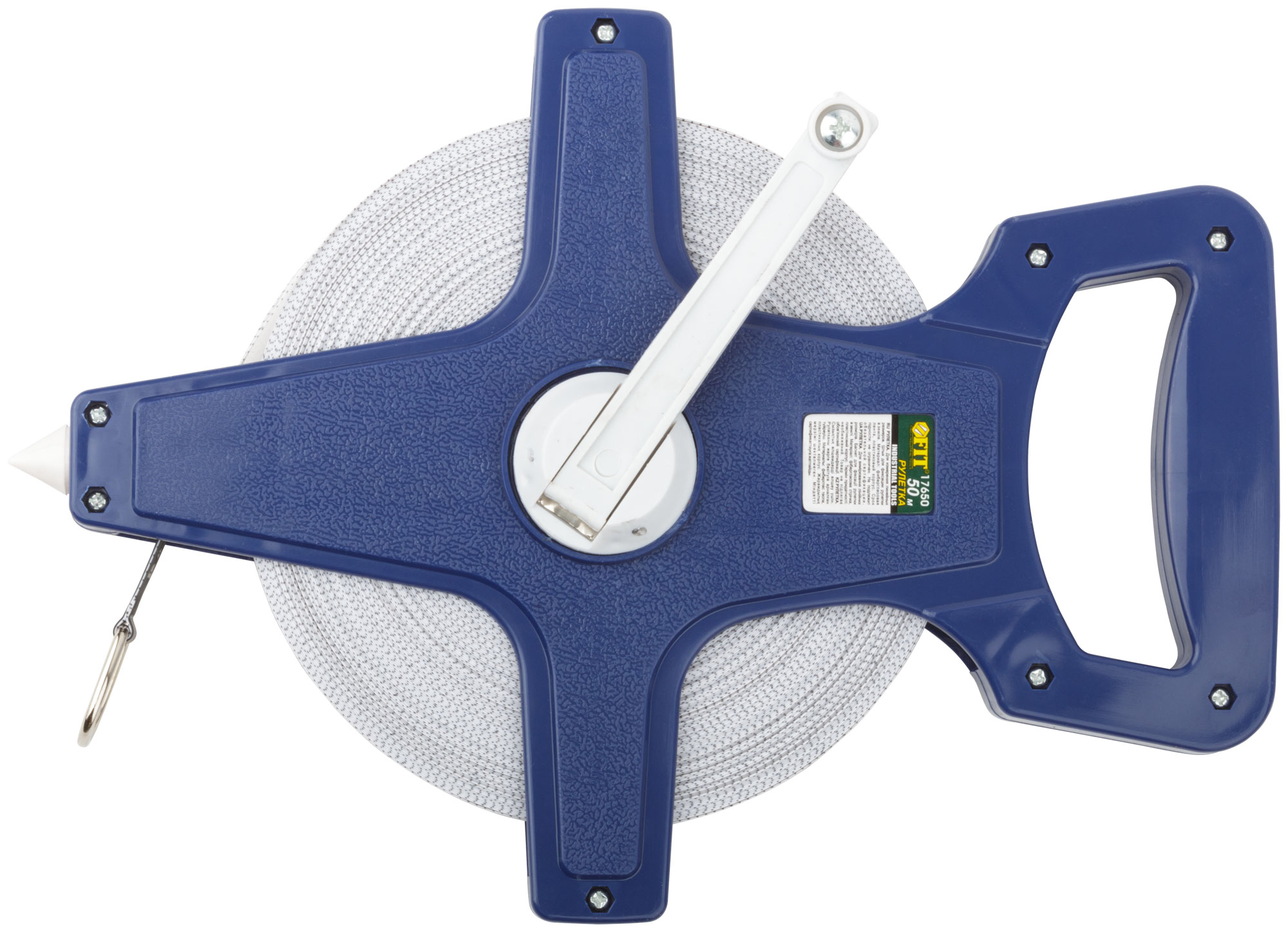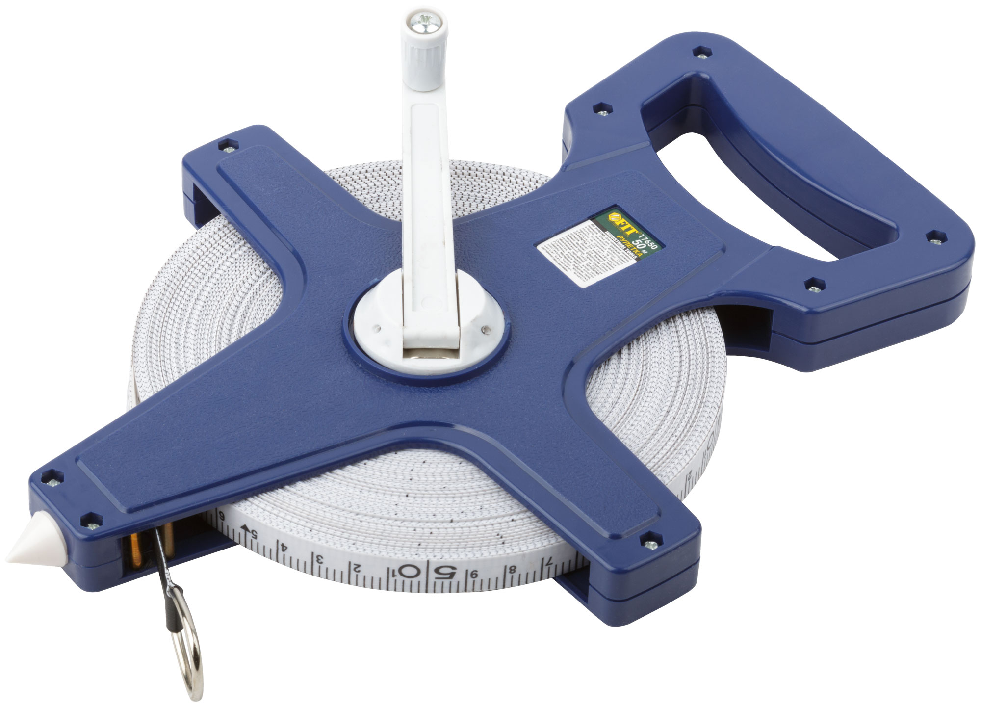 Рулетка землемерная, синий открытый корпус, фибергласовая лента 50 м