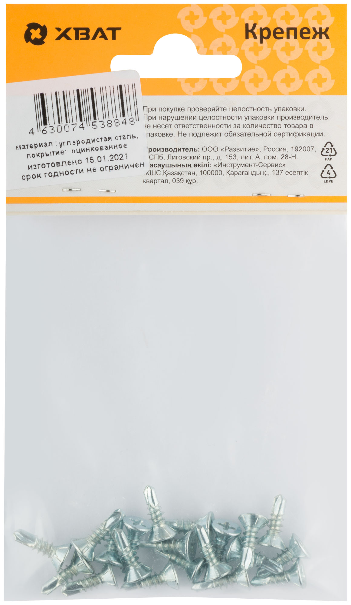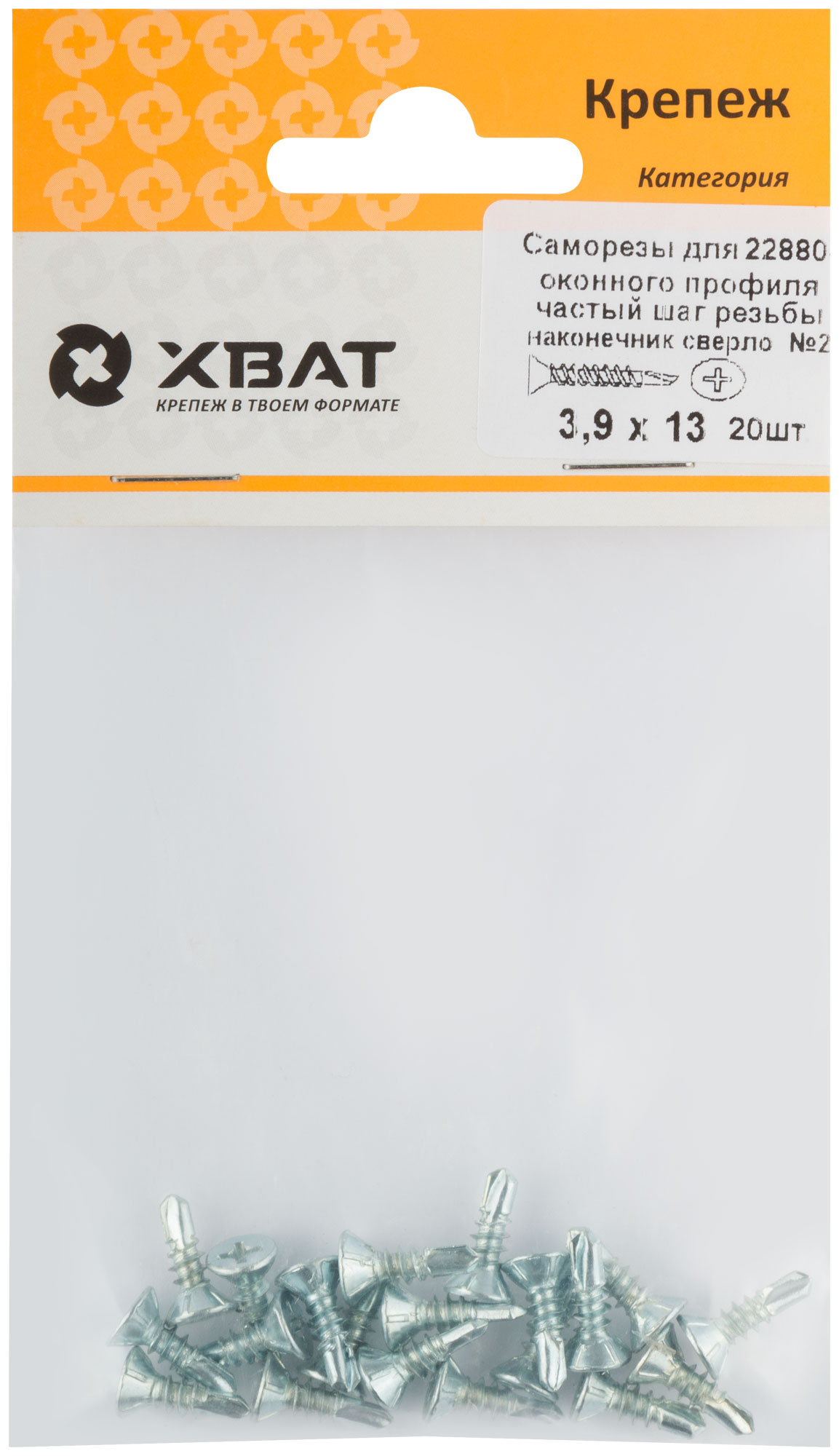 Саморез для оконного профиля частый шаг резьбы, наконечник сверло №2 3.9 х 13 (фасовка 20 шт.)