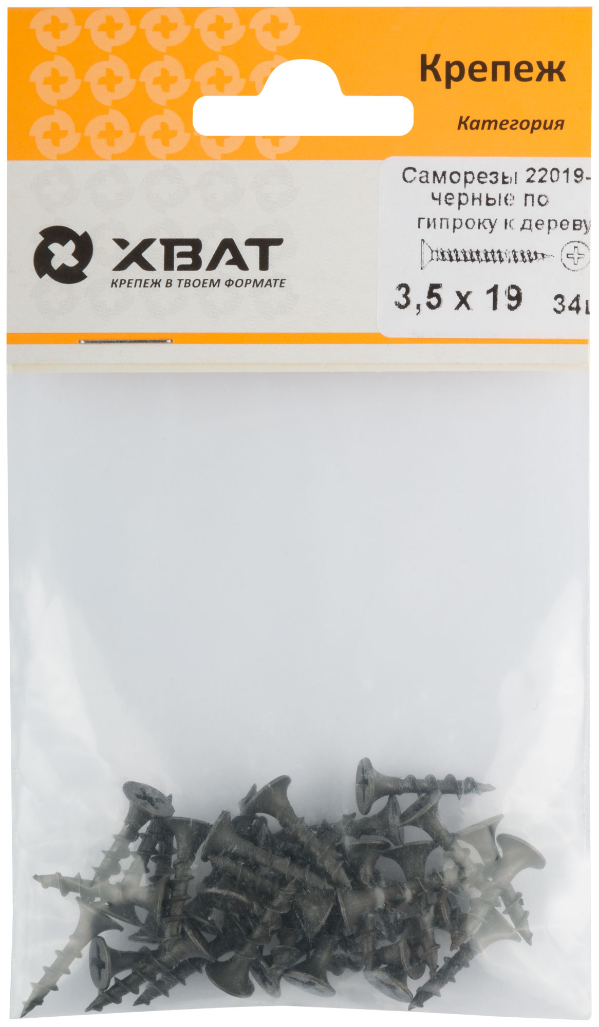Саморезы черные по гипроку к дереву 3,5 х 19 (фасовка 34 шт.)