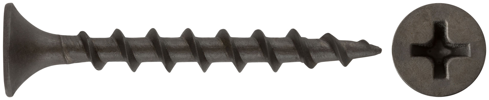 Стальные фосфатированные саморезы с крупной резьбой для монтажа гипсокартонных листов к деревянному основанию. Резьба полная и неполная, потайная головка, шлиц Pн2. Предназначен для крепления материалов к основанию без предварительного сверления.