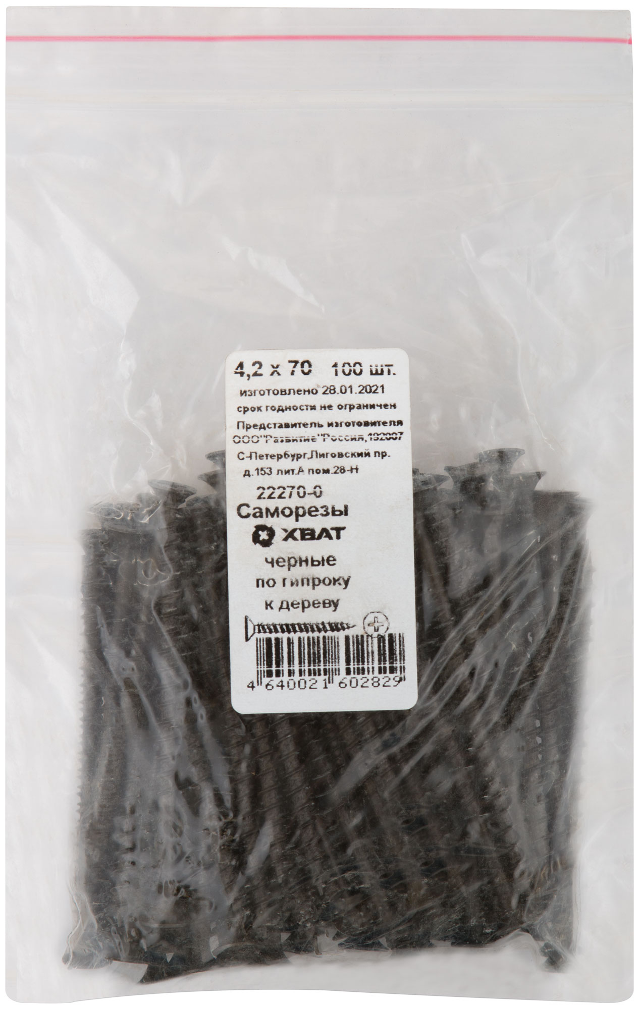 Саморезы черные по гипроку к дереву 4,2 х 70 100 шт. Фасовка