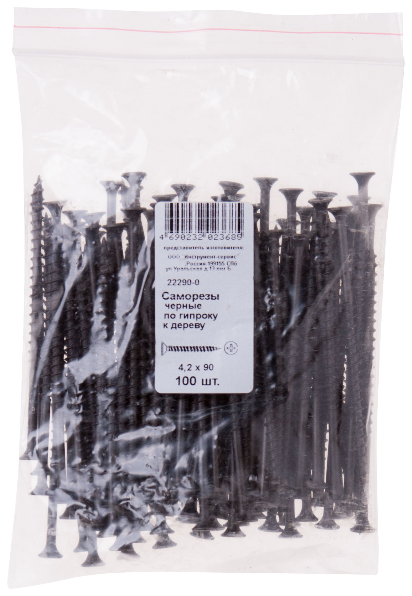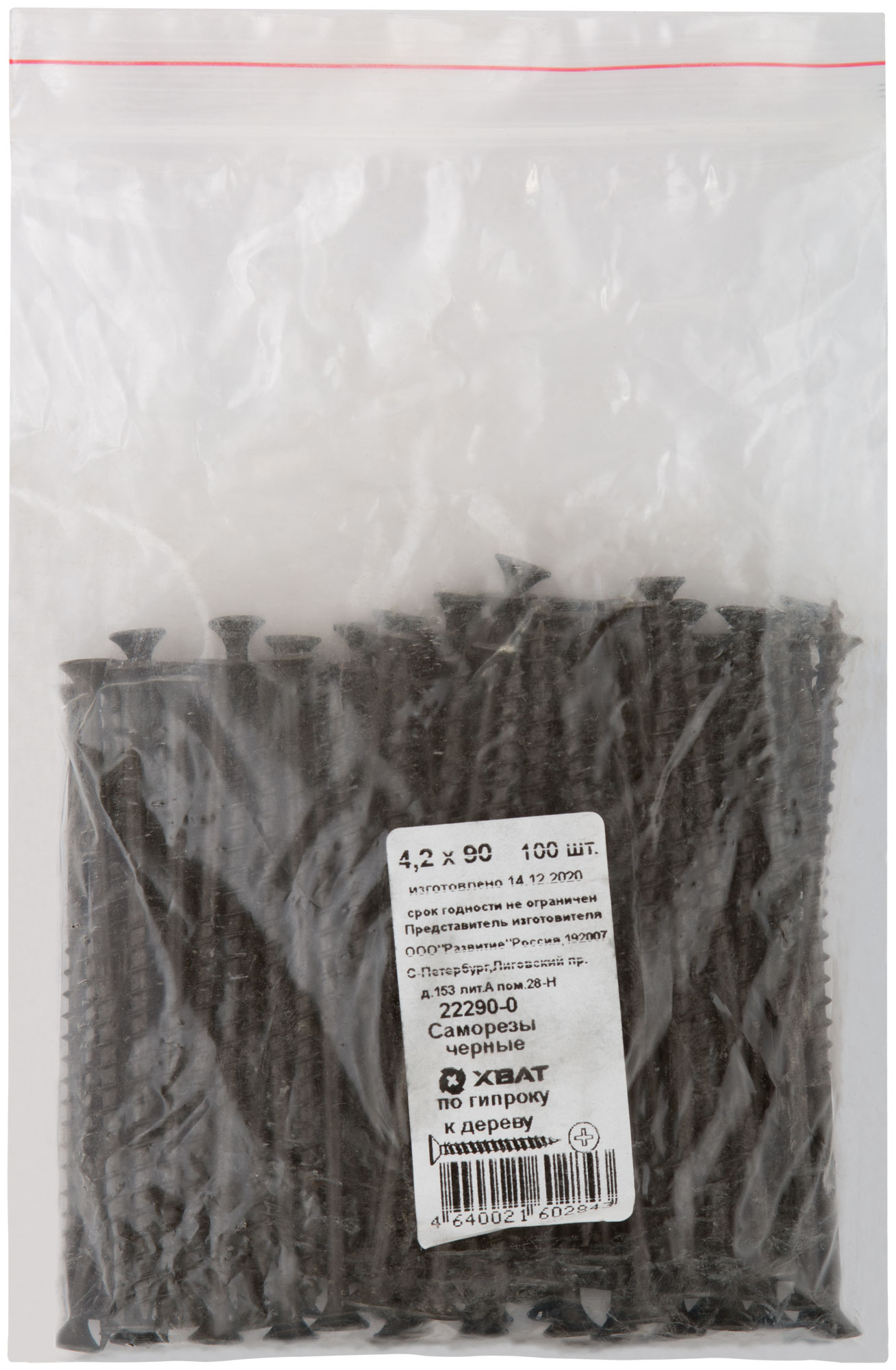Саморезы черные по гипроку к дереву 4,2 х 90 100 шт. Фасовка