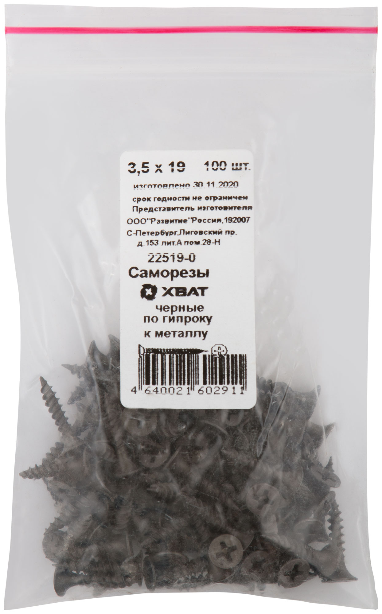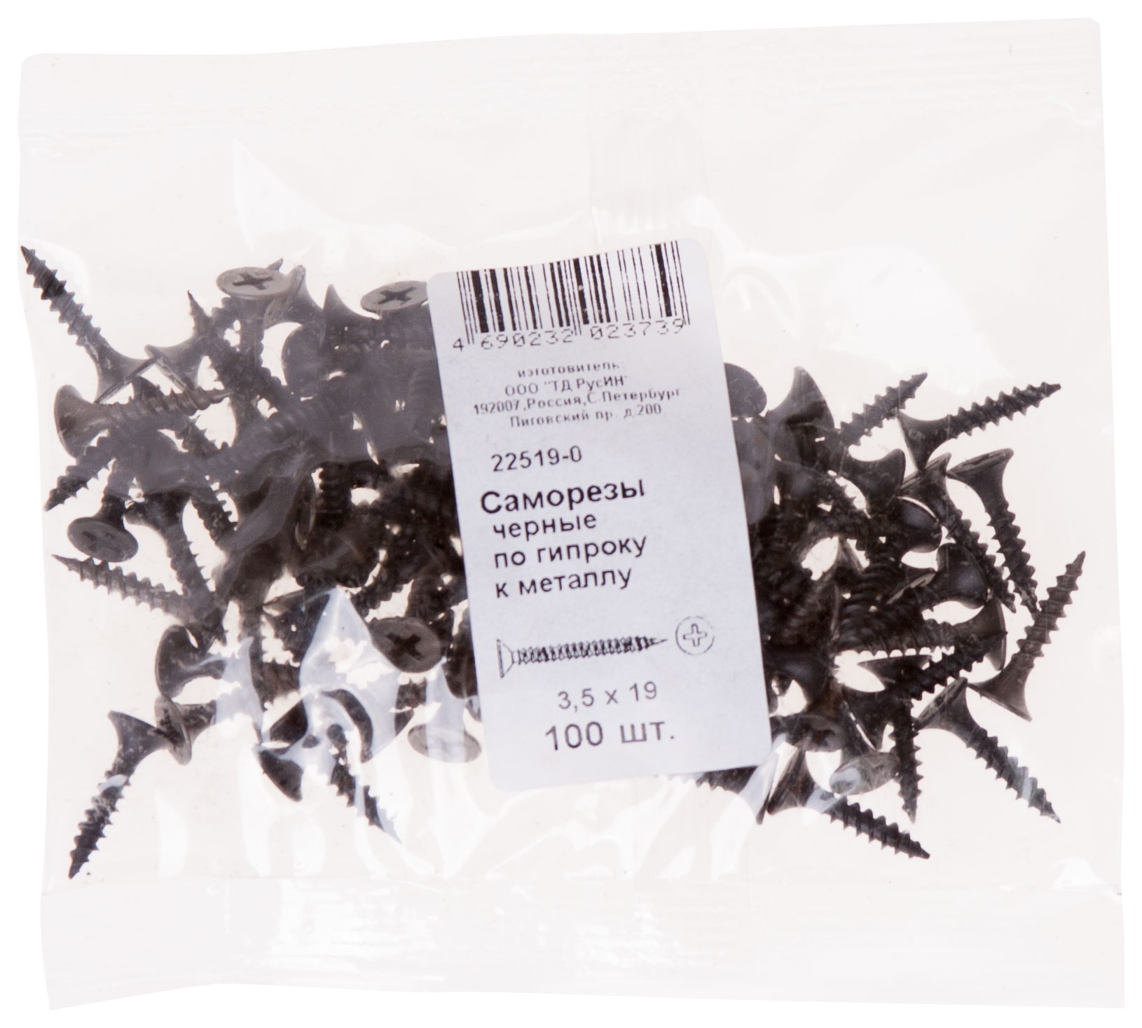 Саморезы черные по гипроку к металлу 3,5 х 19 100 шт. Фасовка