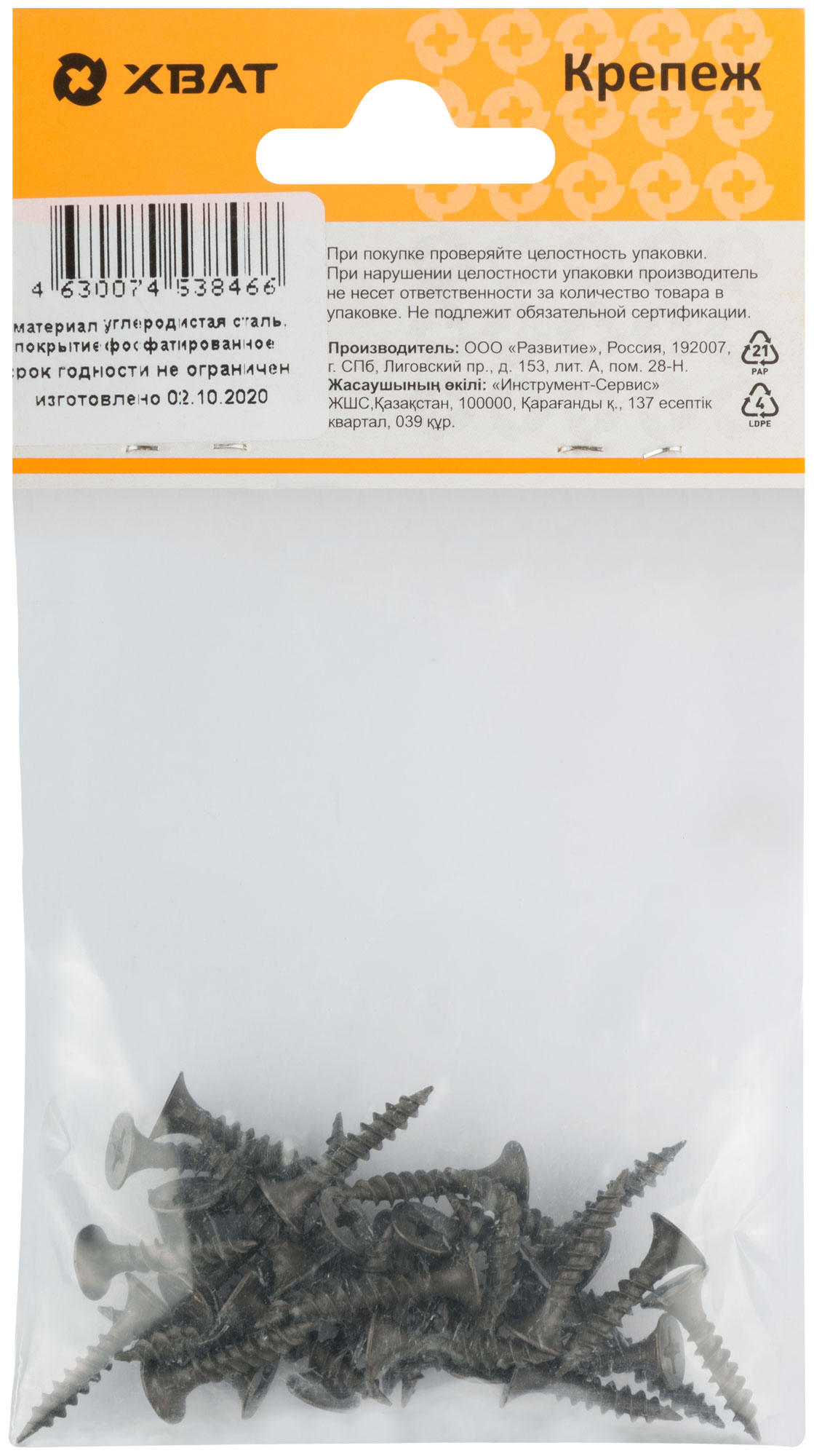 Саморезы черные по гипроку к металлу 3,5 х 19 (фасовка 34 шт.)