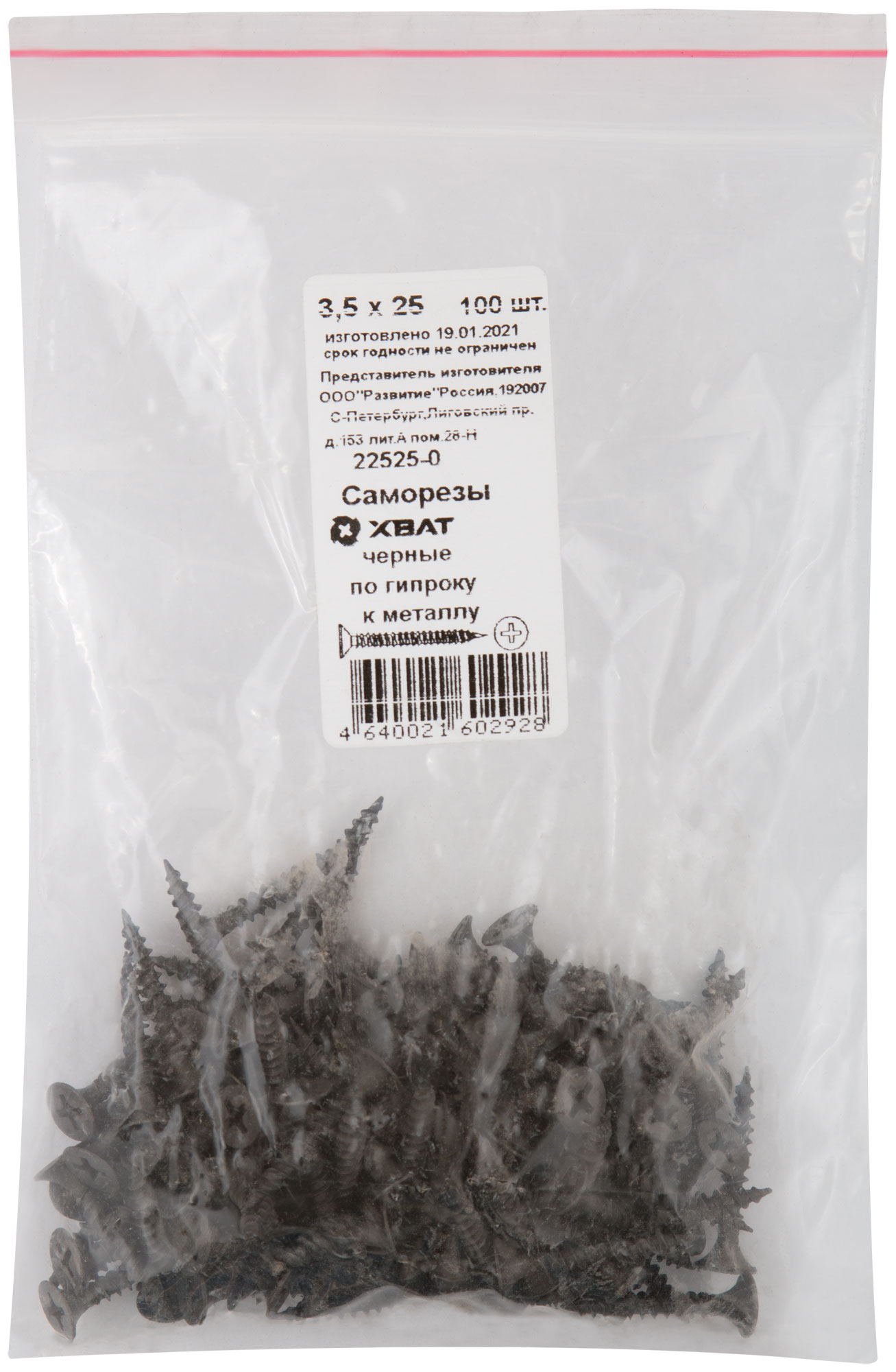 Саморезы черные по гипроку к металлу 3,5 х 25 100 шт. Фасовка