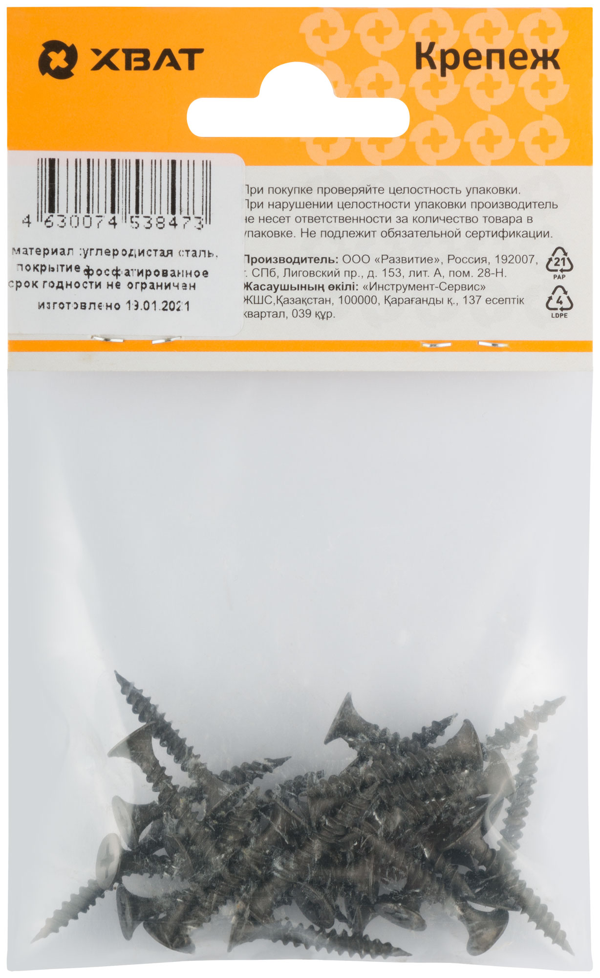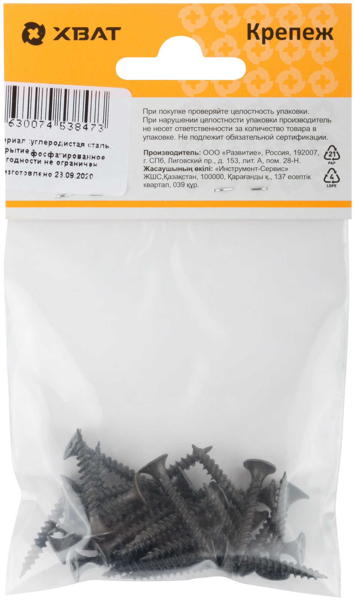 Саморезы черные по гипроку к металлу 3,5 х 25 (фасовка 30 шт.)