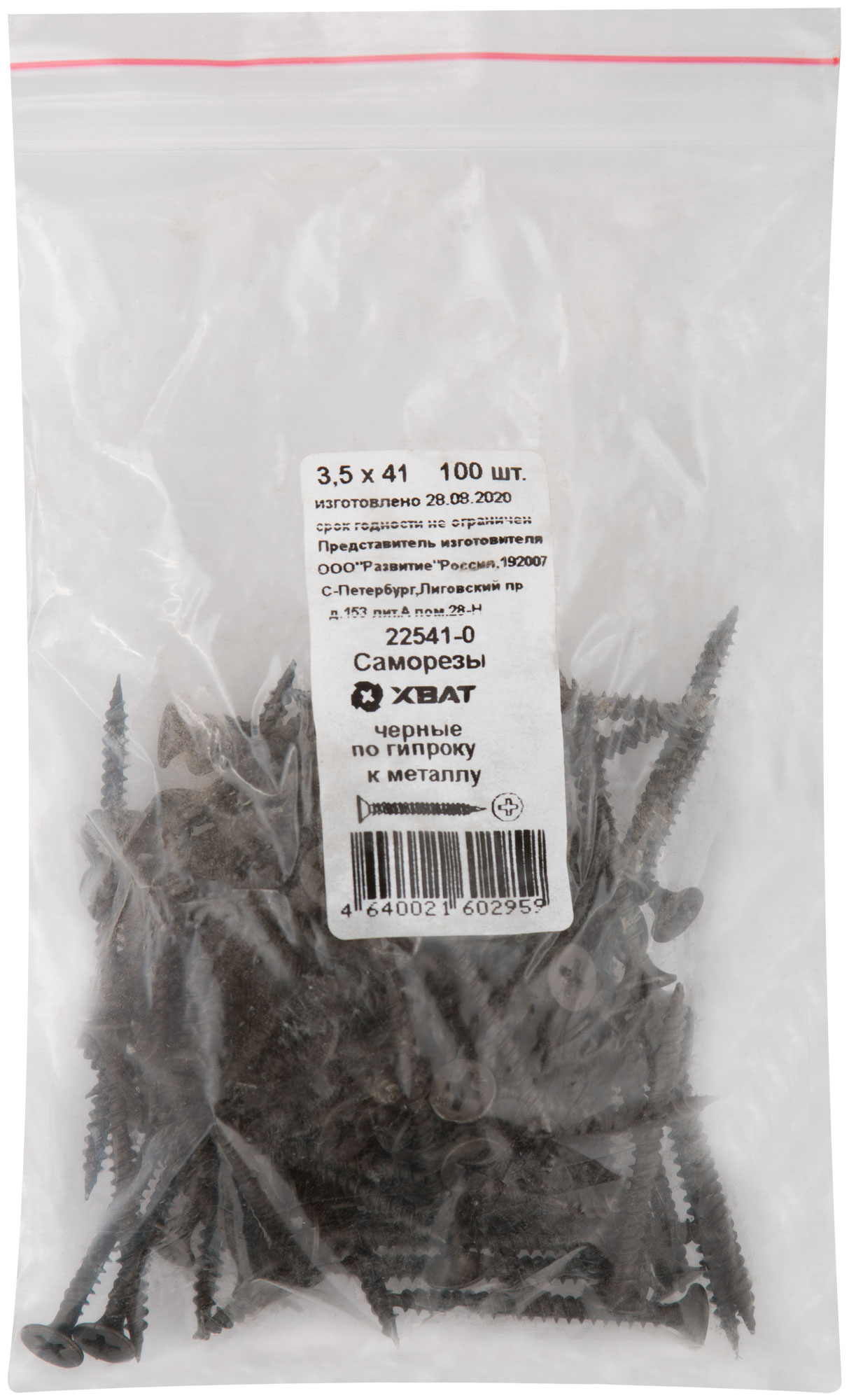 Саморезы черные по гипроку к металлу 3,5 х 41 100 шт. Фасовка