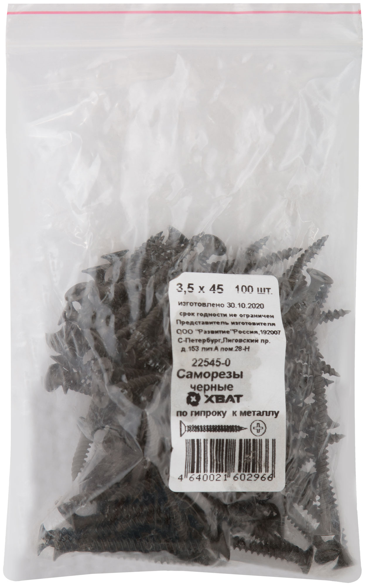 Саморезы черные по гипроку к металлу 3,5 х 45 100 шт. Фасовка