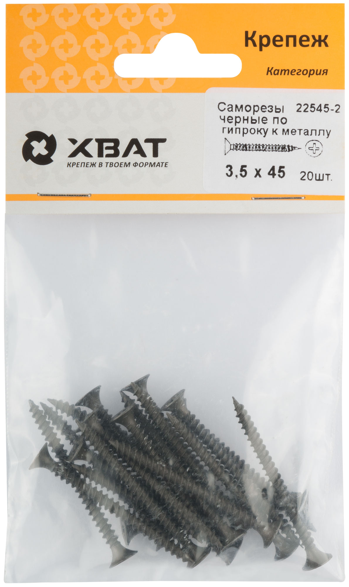 Саморезы черные по гипроку к металлу 3,5 х 45 (фасовка 20 шт.)
