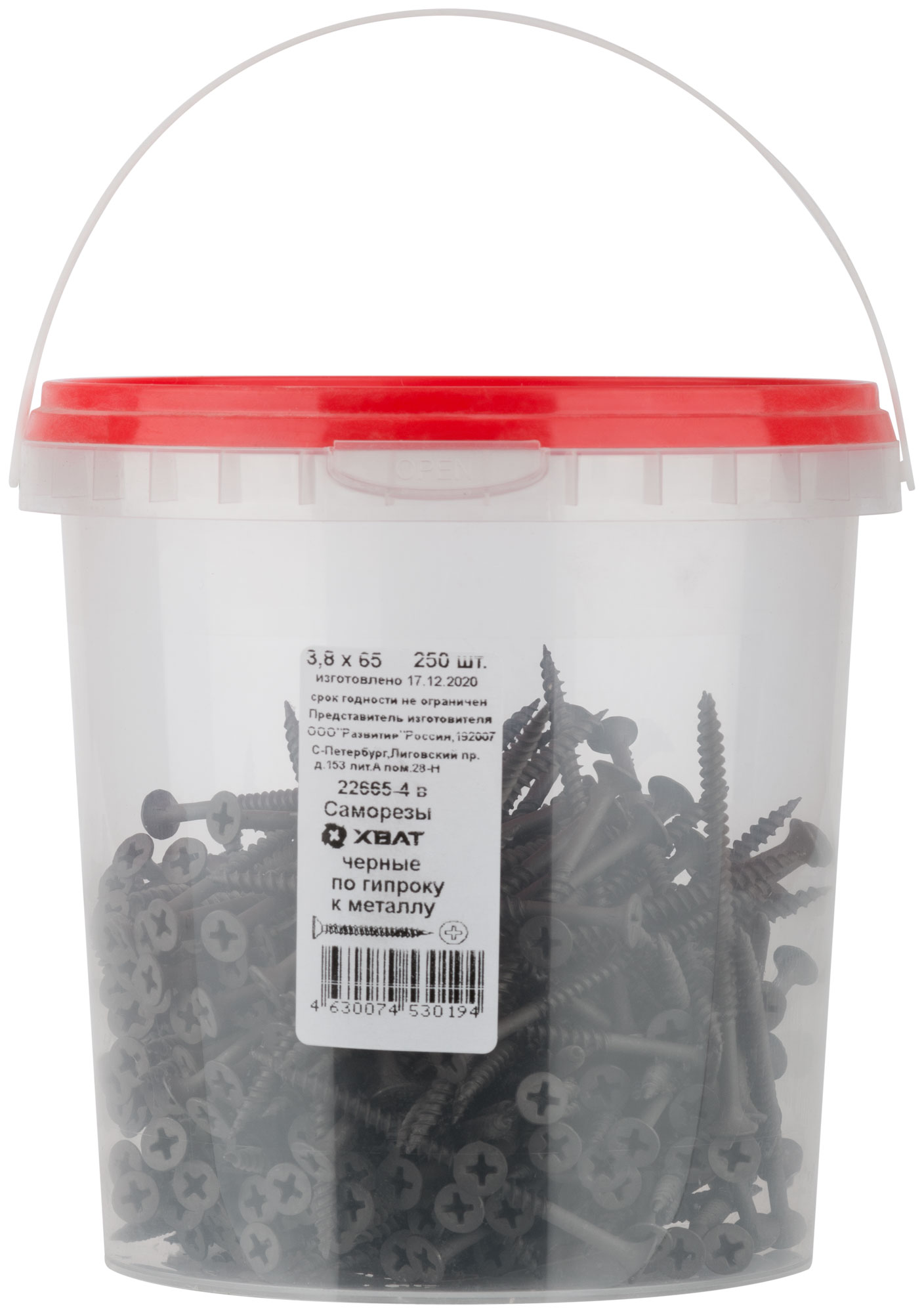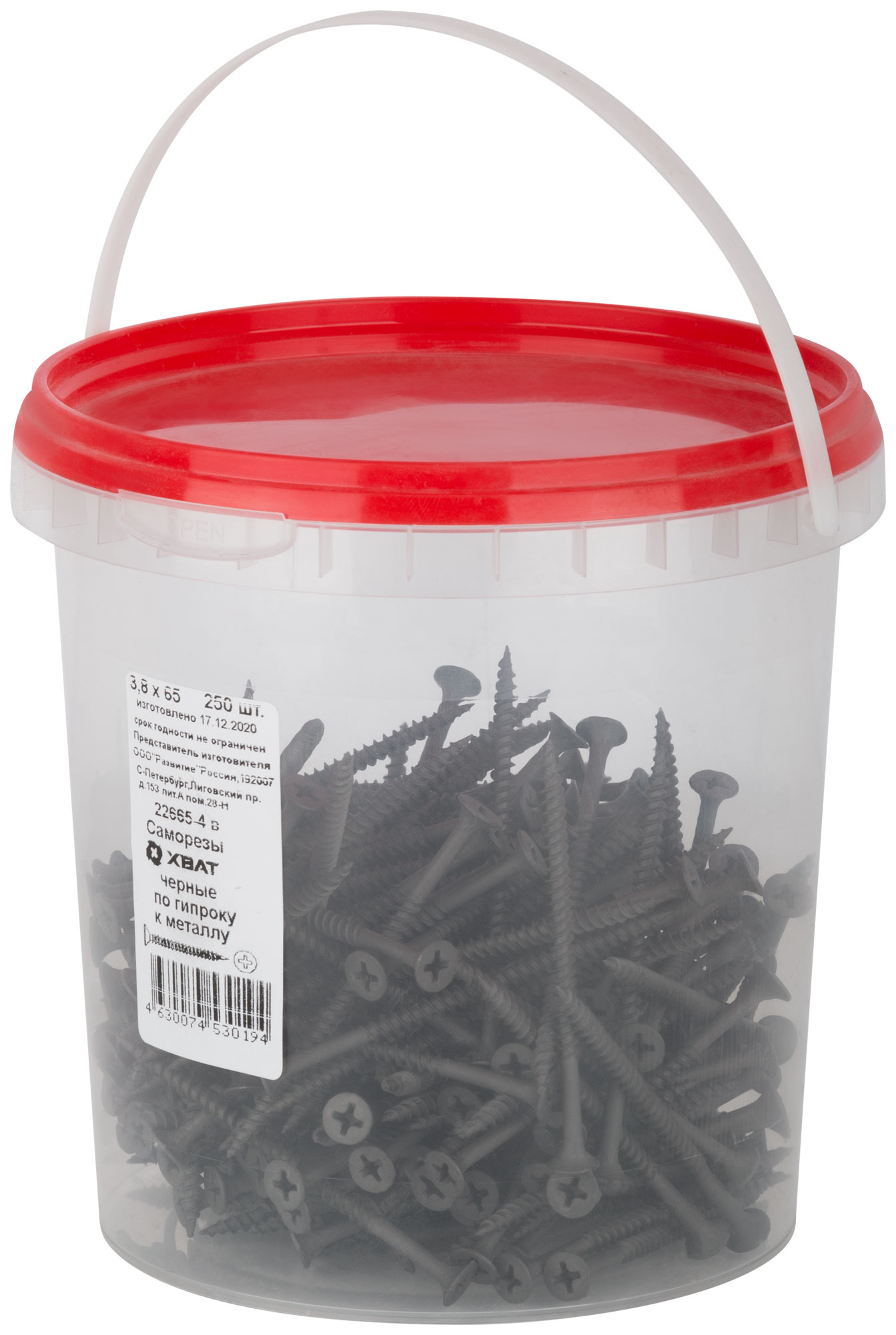 Саморезы черные по гипроку к металлу 3,8 х 65 (фасовка Ведро 250 шт.)
