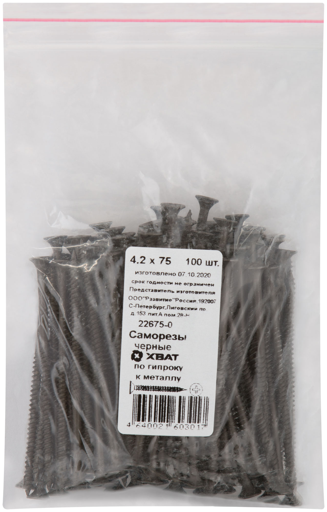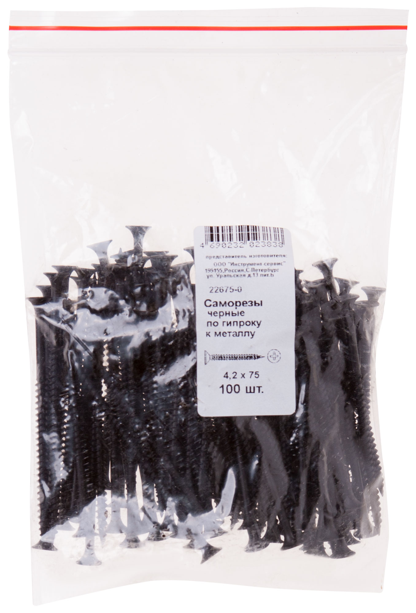 Саморезы черные по гипроку к металлу 4,2 х 75 100 шт. Фасовка